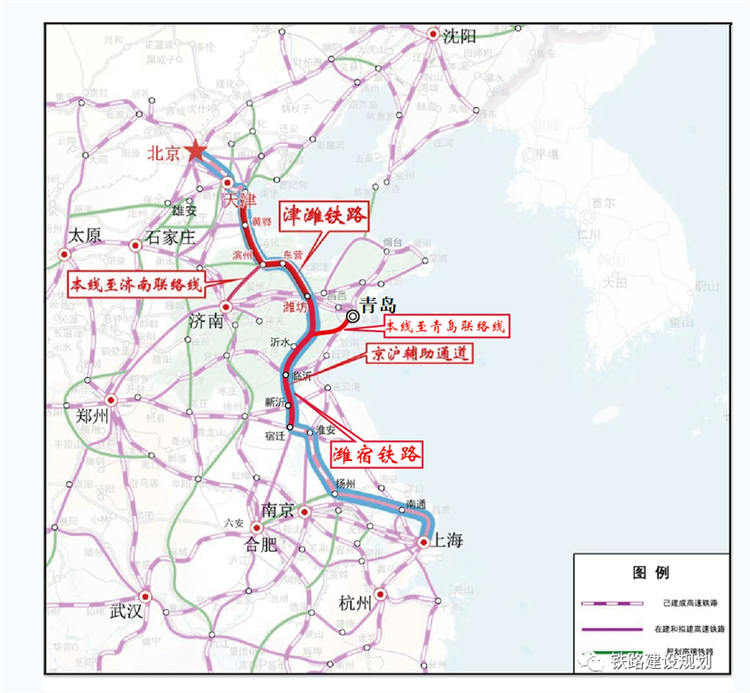 潍宿高铁及青岛联络线项目走向示意图。图源:铁路建设规划