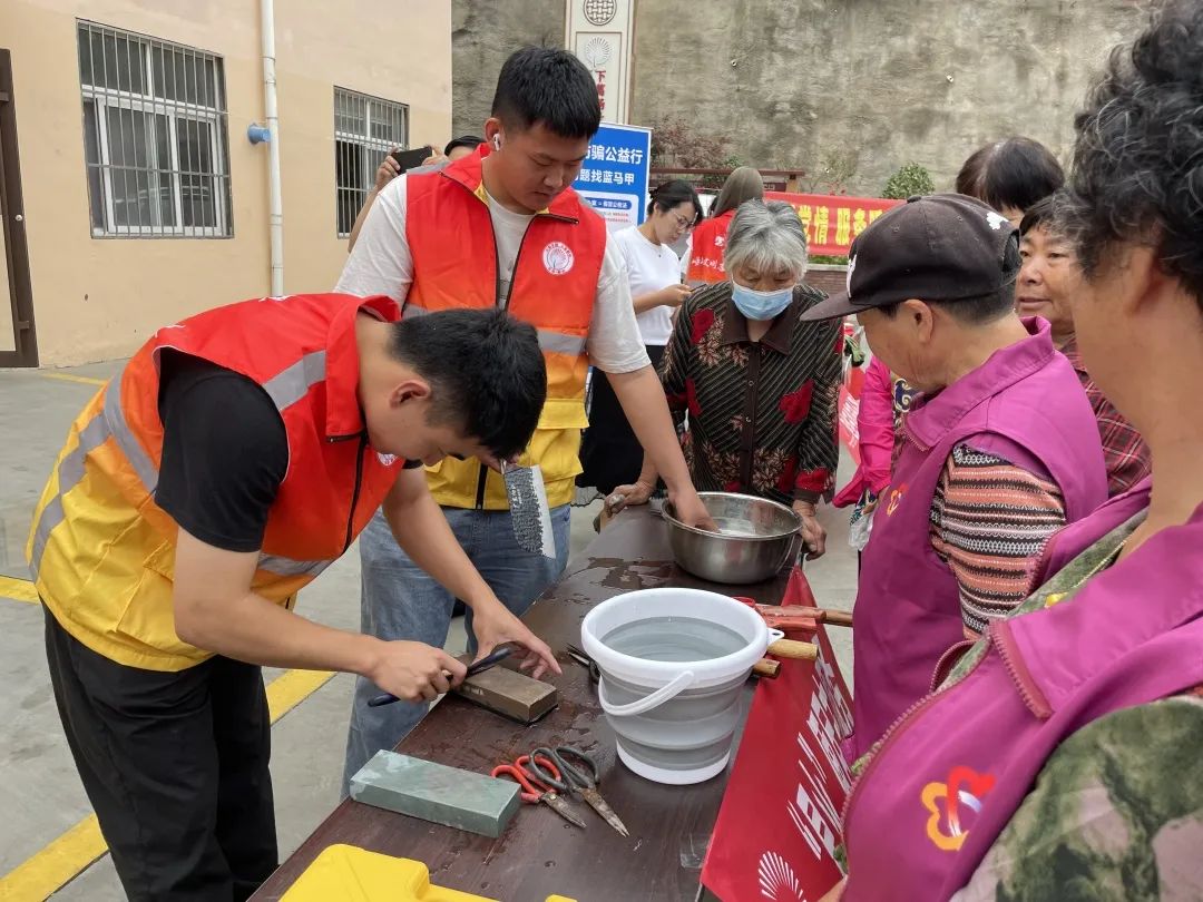 一大早,居民就来到“志愿服务大集”现场。有结伴而来到“红马甲”医疗志愿摊位看诊的老人,有直奔“星火”便民志愿服务摊位磨剪子锵菜刀的大爷大妈,也有“玩不转”手机但依旧紧跟时代步伐,到智能手机小课堂“培训”的居民,还有关心城市建设、一心想要成为“文明拍客”的热心居民......“我们的节日·端午”志愿服务大集共有“红马甲”医疗志愿服务队、青岛市星火救援队、青岛恒星科技学院“艺点星光”社会实践团等5支队伍参与,为村民进行义诊、义剪、美德健康生活方式和文明旅游宣讲等8项志愿服务。