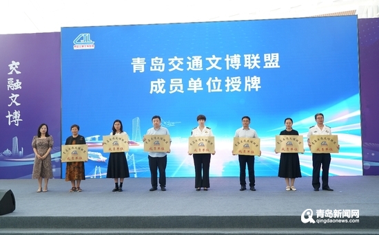 仪式上,先后为青岛道路交通博物馆、青岛海底隧道博物馆、青岛邮电博物馆、青岛市南针路航海博物馆、胶济铁路青岛博物馆、青岛邮轮母港、TEU集装箱部落、连钢创新团队展馆、青岛地铁展示馆、青岛航标展馆等14家联盟成员单位授牌。