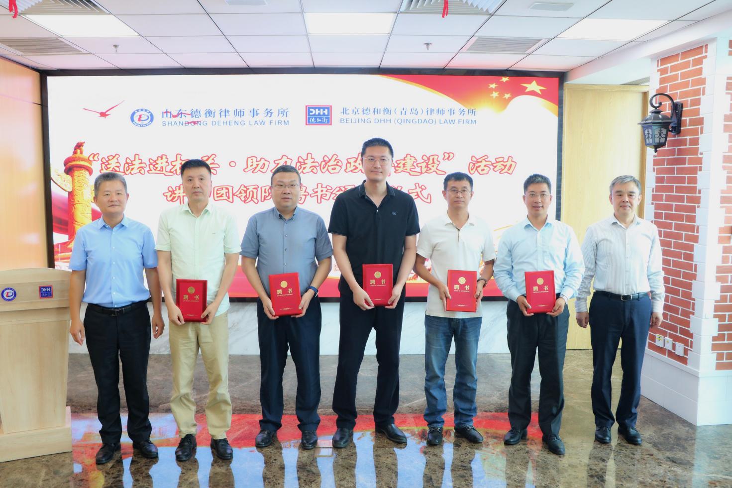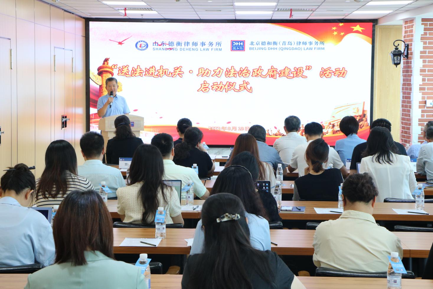 为积极响应和贯彻落实司法部党组对广大律师提出的“五点希望”,结合中共中央办公厅、国务院办公厅印发的《关于建立领导干部应知应会党内法规和国家法律清单制度的意见》文件精神,8月18日上午,山东德衡律师事务所(以下简称德衡所)、北京德和衡(青岛)律师事务所(以下简称德和衡青岛所)联合开展的“送法进机关·助力法治政府建设”活动(以下简称活动)正式启动。活动面向青岛市及各区市机关单位开展领导干部应知应会法律法规宣讲,切实履行德衡、德和衡律师的社会责任、积极助力法治政府建设。