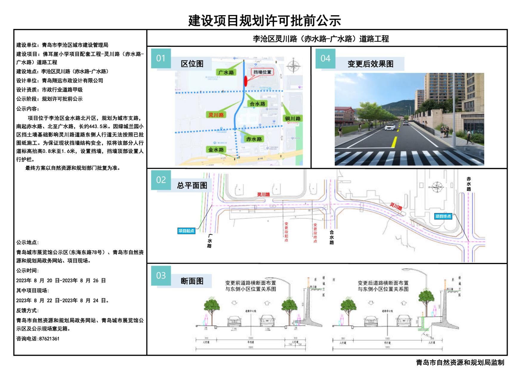 青岛日报社/观海新闻8月22日讯 近日,青岛市自然资源和规划局发布了《佛耳崖小学项目配套工程-灵川路(赤水路-广水路)道路工程批前公示》,由青岛市李沧区城市建设管理局负责建设。