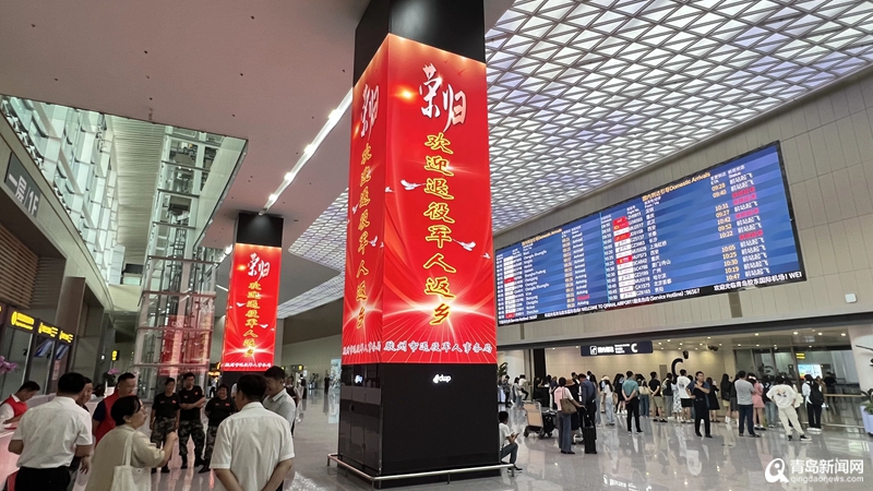 在青岛胶东国际机场接机大厅,工作人员为返乡退役军人佩戴红花和绶带,赠送《荣归返乡攻略》,提供政策咨询及帮办服务,并提供热水、充电宝、雨伞等。胶州市退役军人事务局副局长贾桂来说:“来到胶东国际机场的退役军人,不管是回到青岛还是转机到其他城市,我们都以最饱满的热情欢迎老兵返乡,用我们真诚的服务让退役军人第一时间感受到地方的温暖。”