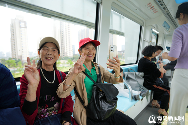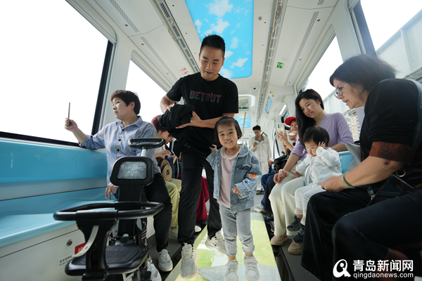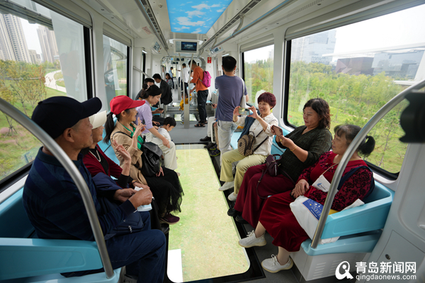 9月26日开通运营当天,乘客体验中车四方股份公司研制的我国首列商用空轨列车。