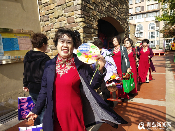 城阳街道吕家庄社区的老人们与金色摇篮幼儿园的老师孩子们欢聚一堂,老少同乐,共庆重阳。幼儿园为老人们准备的精彩节目,有舞蹈、小提琴合奏、合唱等,社区也带来三个节目,老人们集体拍打养正操、老年旗袍队走秀展演和乐器独奏。“我今年70岁了,今天带来了电吹管独奏的节目《久别的草原》。”一曲悠扬的演奏结束,吕锡悌一边收拾着心爱的乐器一边高兴地说道。精彩的演出活动让台下的老人们笑得合不拢嘴,演出间隙,一份份重阳糕递到老人身旁,增添了浓浓的节日氛围感和仪式感。