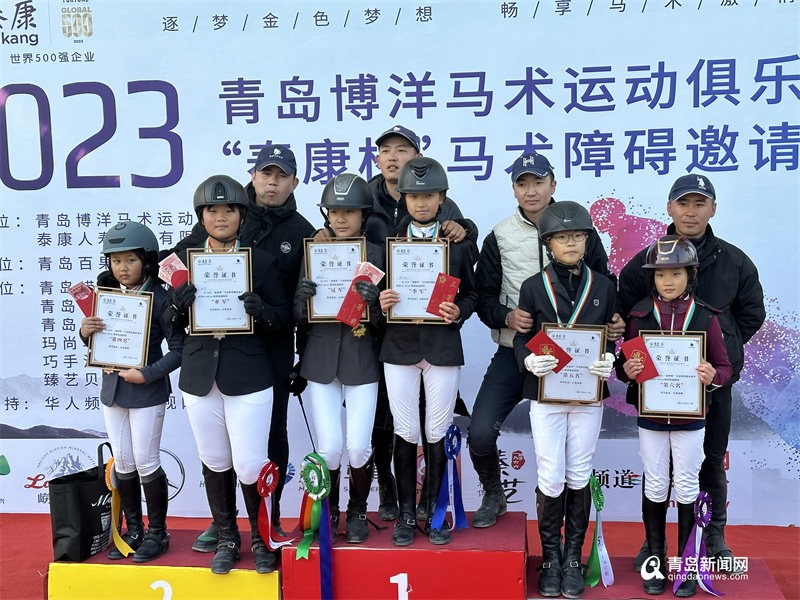 在为期两天的比赛中,50余位选手、100多组参赛人马组合展开激烈争夺,东道主博洋马术俱乐部成为最大赢家,郑梓默、程郎木、解晨雨、刘依佳、石梦慈分别拿下地杆赛、交叉杆及30-50CM场地障碍赛、50-60CM级别场地障碍赛、70-80CM级别场地障碍赛、90-100CM级别场地障碍赛冠军。