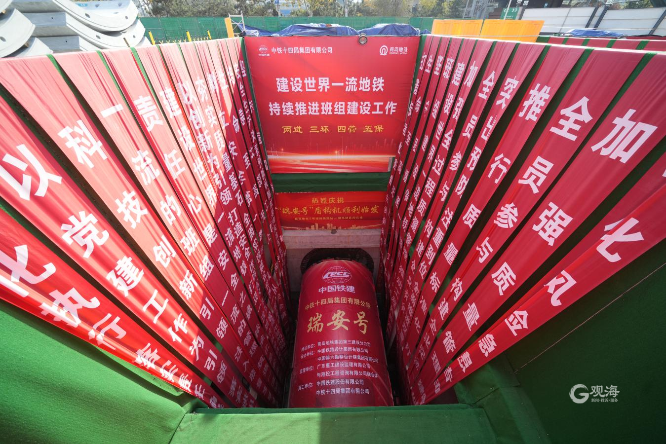 青岛地铁5号线工程迎来一关键建设节点。11月24日,5号线瑞昌路站-湖岛站区间右线双模盾构机“瑞安号”顺利始发,这是5号线第7台始发的隧道掘进设备。目前,5号线隧道掘进设备已有三分之一始发。