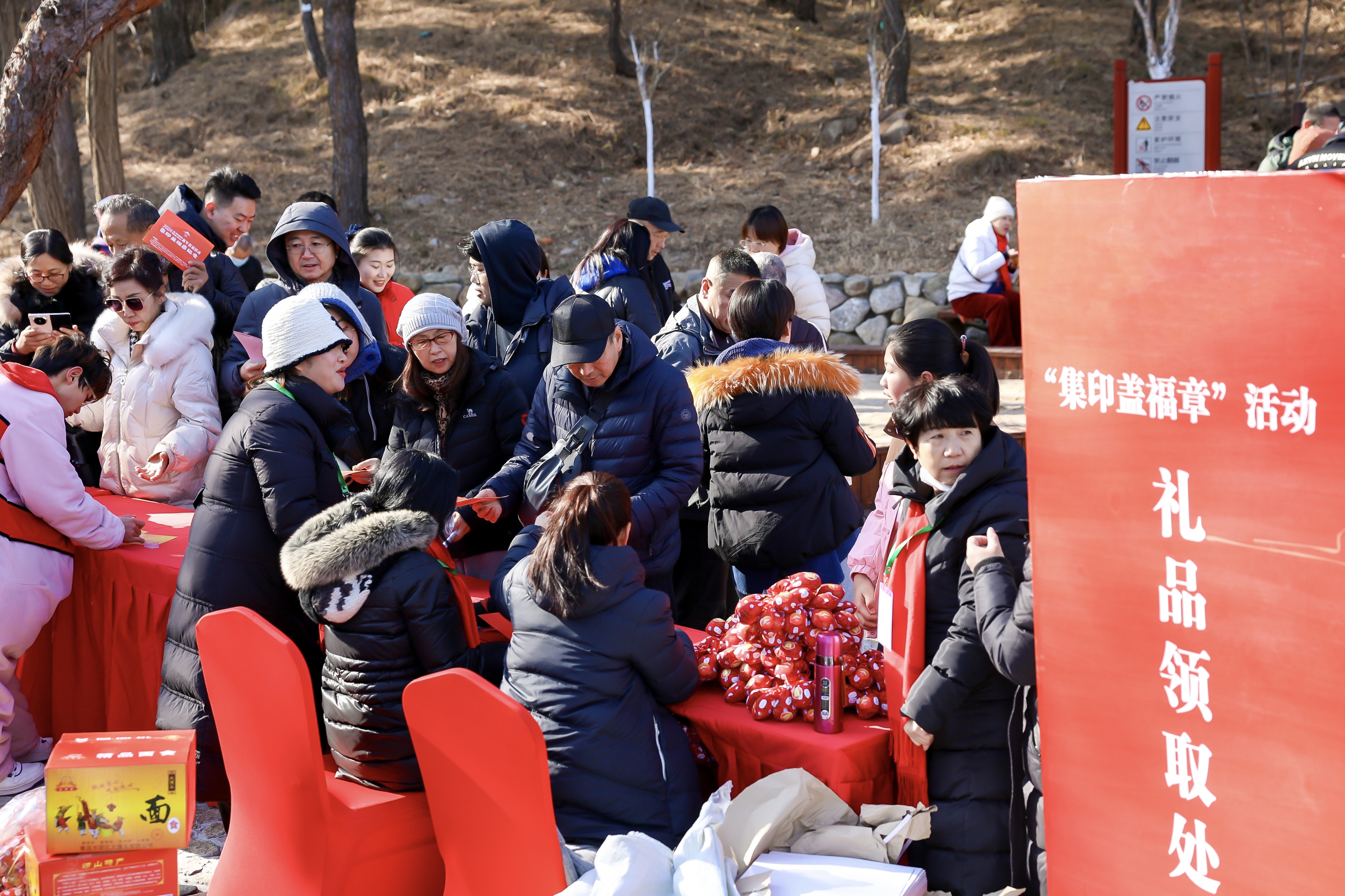 本次活动,所有参加前期倒计时海报打卡或现场参与“集印盖福章”的游客,都可获赠伴手礼一份。参加活动的游客获赠了平安福果(苹果)、如意香囊和大红福字,还有部分幸运游客通过参加弹幕抽奖等活动,赢得崂山王哥庄大馒头等奖品,欢乐多多收获满满。