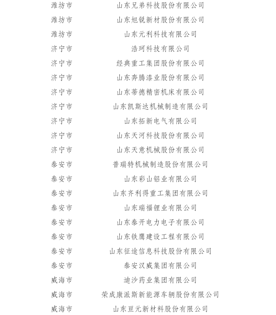 关于山东省先进中小企业名单的公示
