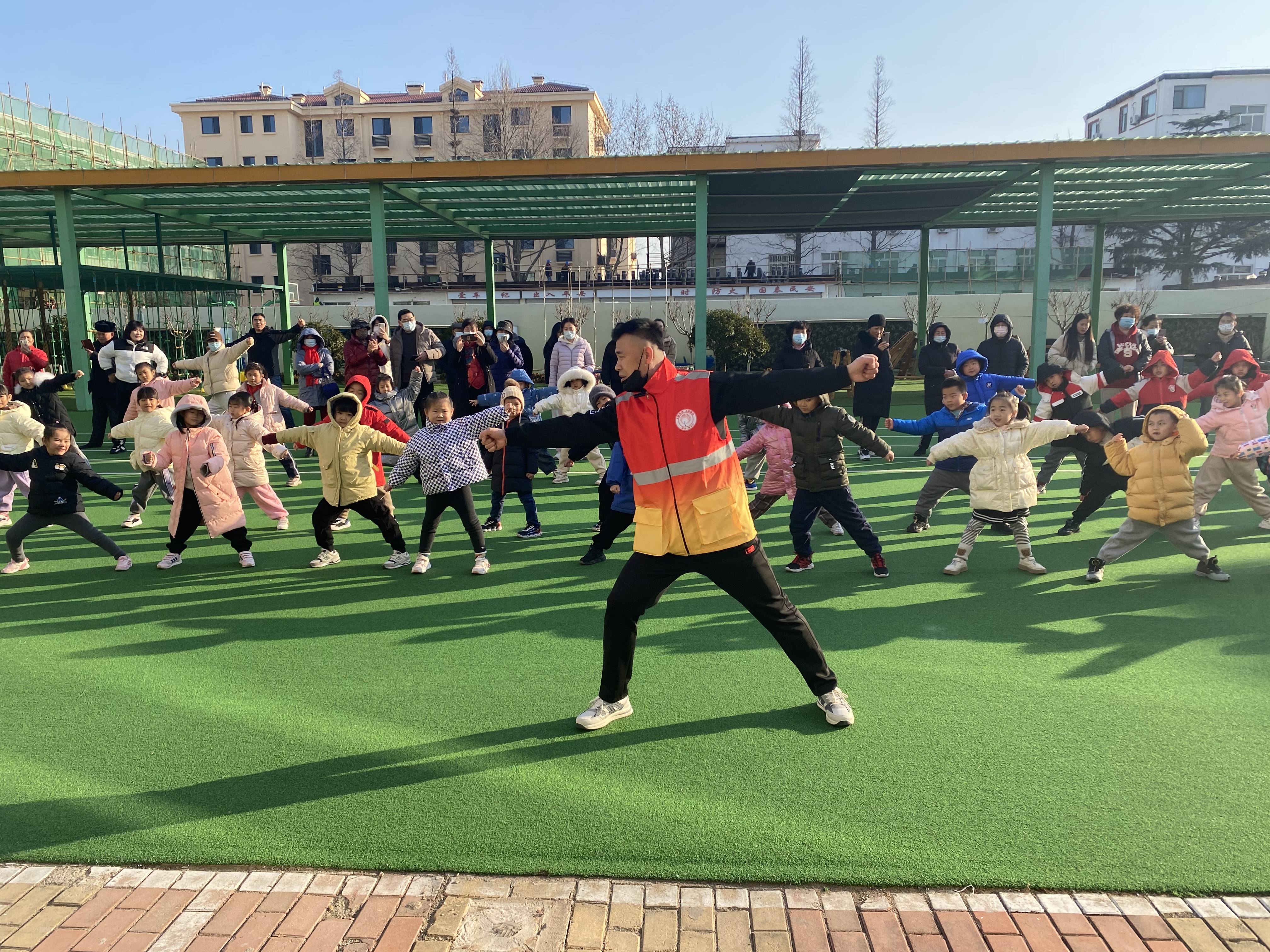 高飞老师向孩子们展示了中华传统小住拳、快速有力的武术套路,还有精彩的侧身飞踢,引起现场家长和孩子们阵阵高呼和热烈掌声。孩子们跃跃欲试,积极投入到训练中。一二三四的口号嘹亮清澈,大家神采奕奕、摩拳擦掌,虽然隆冬季节有些冷意,但是孩子们体验武术的热情洋溢四射。