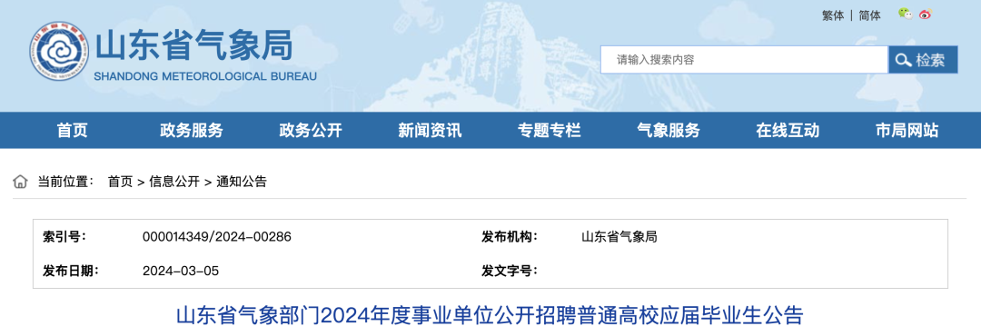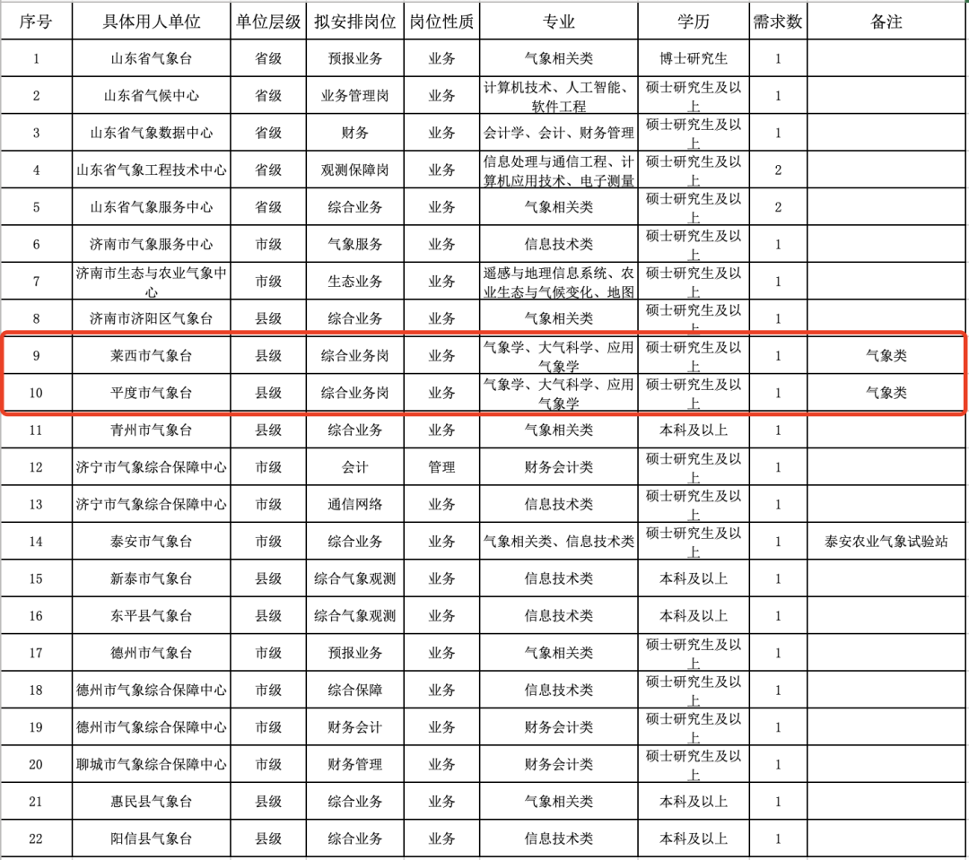 山东省气象部门2024年度公开招聘国家气象系统事业编制毕业生24人,其中博士生岗位1人,研究生岗位18人,本科岗位5人。