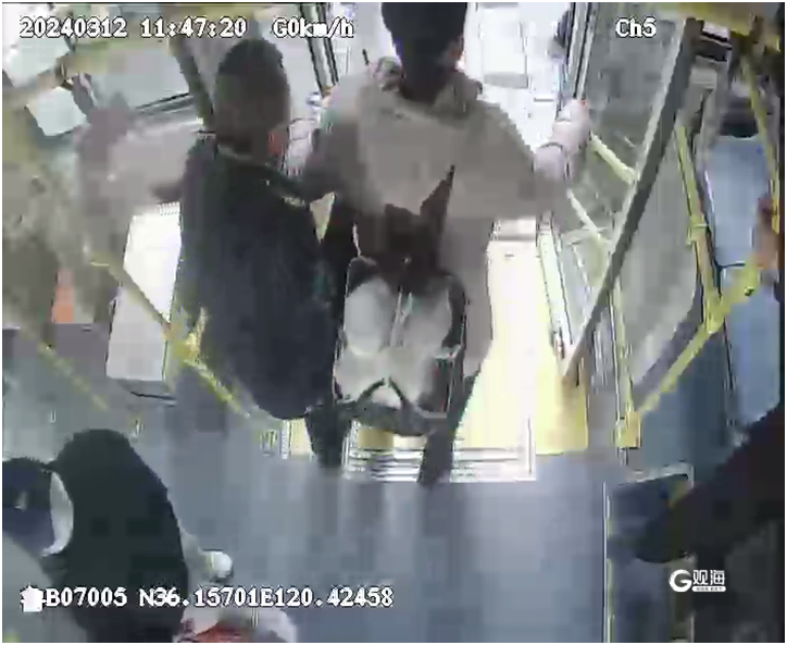 当日11时47分左右,车辆行驶至青岛五十八站时,一位腿脚不便的大爷准备下车。杨建军见状,立刻停稳车辆,起身走到大爷身边,小心翼翼地扶他下车,并细心叮嘱其注意安全。大爷对杨建军的帮助连声道谢,表示这样的服务让人感到非常温暖。