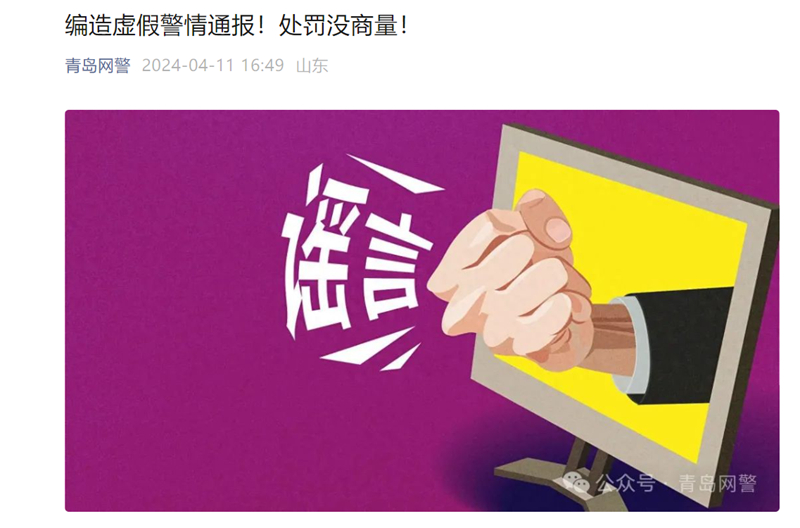 青岛新闻网4月12日讯(记者 陈志伟)青岛网警工作发现,一网民在抖音App等平台发布了一则“警情通报”。经核实,青岛市各级公安机关并未发布过此“警情通报”,且该通报除使用警徽外,内容、格式上也存在差异,该信息为虚假警情通报。