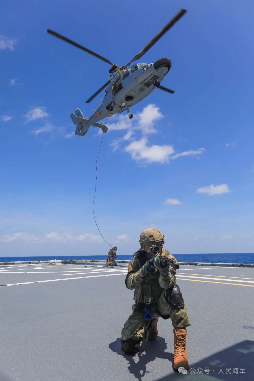 ▲索降登船。梁杰培 摄