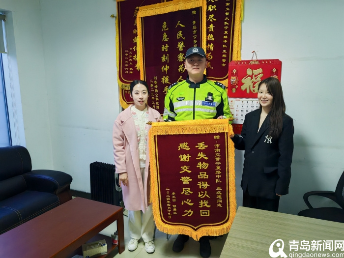 4月23日两名外地游客向交警市南大队宁夏路中队送来了一面锦旗,感谢交警及时伸出援手帮助自己找回了遗失的手机。4月20日16时许,正在银海大世界执勤的宁夏路中队辅警王远旭接到两名外地游客的求助,称其不慎将其手机遗留在了乘坐的出租车上。辅警王远旭随即带领乘客前往银海大世界监控室,协调工作人员查看了其下车位置的监控录像,确定了具体车辆。辅警王远旭与出租车驾驶员取得了联系,出租车驾驶员表示自己也正在寻找手机失主,最终执勤警员帮助两名游客拿回了遗失的手机。当事人对市南交警的帮助送上了锦旗表达了衷心的感谢。
