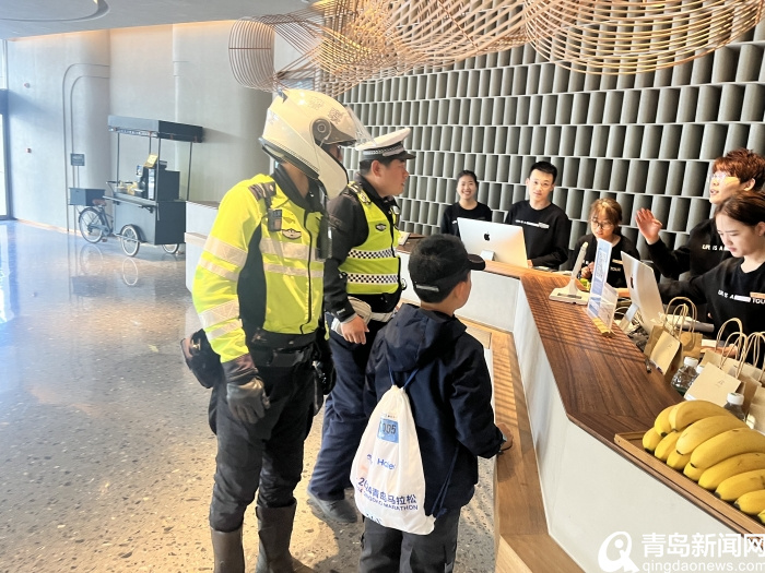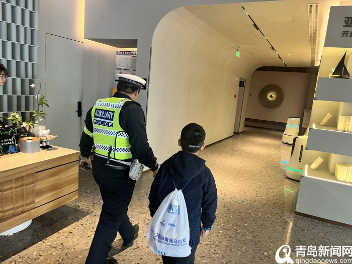4月21日,交警市南大队宁夏路中队在香港中路燕儿岛路路口遇到一名小男孩求助,小男孩年龄较小情绪比较激动,表示自己迷路找不到妈妈了,执勤警员一面安抚孩子的情绪,一面询问了小男孩妈妈的具体信息。执勤警员拉着小男孩的手,与其家属进行了联系确定了酒店位置,随后将小男孩送到了其家长的身边,并一再叮嘱要照看好自己的孩子,小男孩见到妈妈露出了笑容,还不忘回头说“谢谢警察叔叔”。