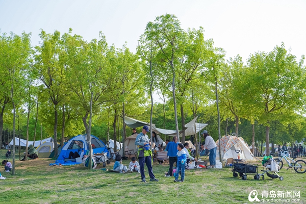 从现场看,这里人流如织,很多人都在绿地上搭起了帐篷,玩累了就在帐篷里休息,旁边还有来自各地的美食,中西餐都有,馄饨、排骨米饭、水饺、面筋、炸鸡、汉堡……而且价格都很亲民,大家在这里玩得开心,吃得尽兴。