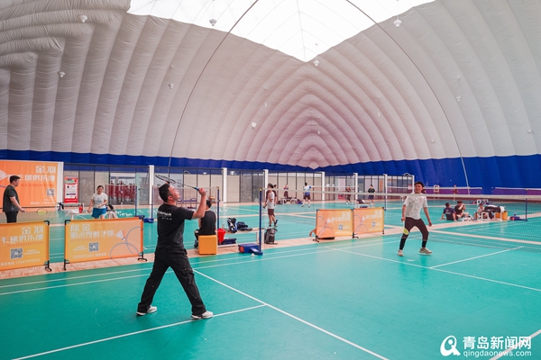 第二站,采风团来到了位于广博路上的群众文体中心。该中心场馆是山东省首座采用气膜结构形式作为主体场馆的运动中心,场馆分为室内钢结构、气膜体育馆以及室外笼式场地。其中,室内钢结构一层使用面积800平方米,主要业态为场馆配套便民项目,包括门厅、便民健康小屋、便利店、餐厅等;室内钢结构二层使用面积800平方米,主要业态为办公区和体育培训教室等。气膜体育馆使用面积4400平方米,规划标准篮球场3块、标准羽毛球场9片。