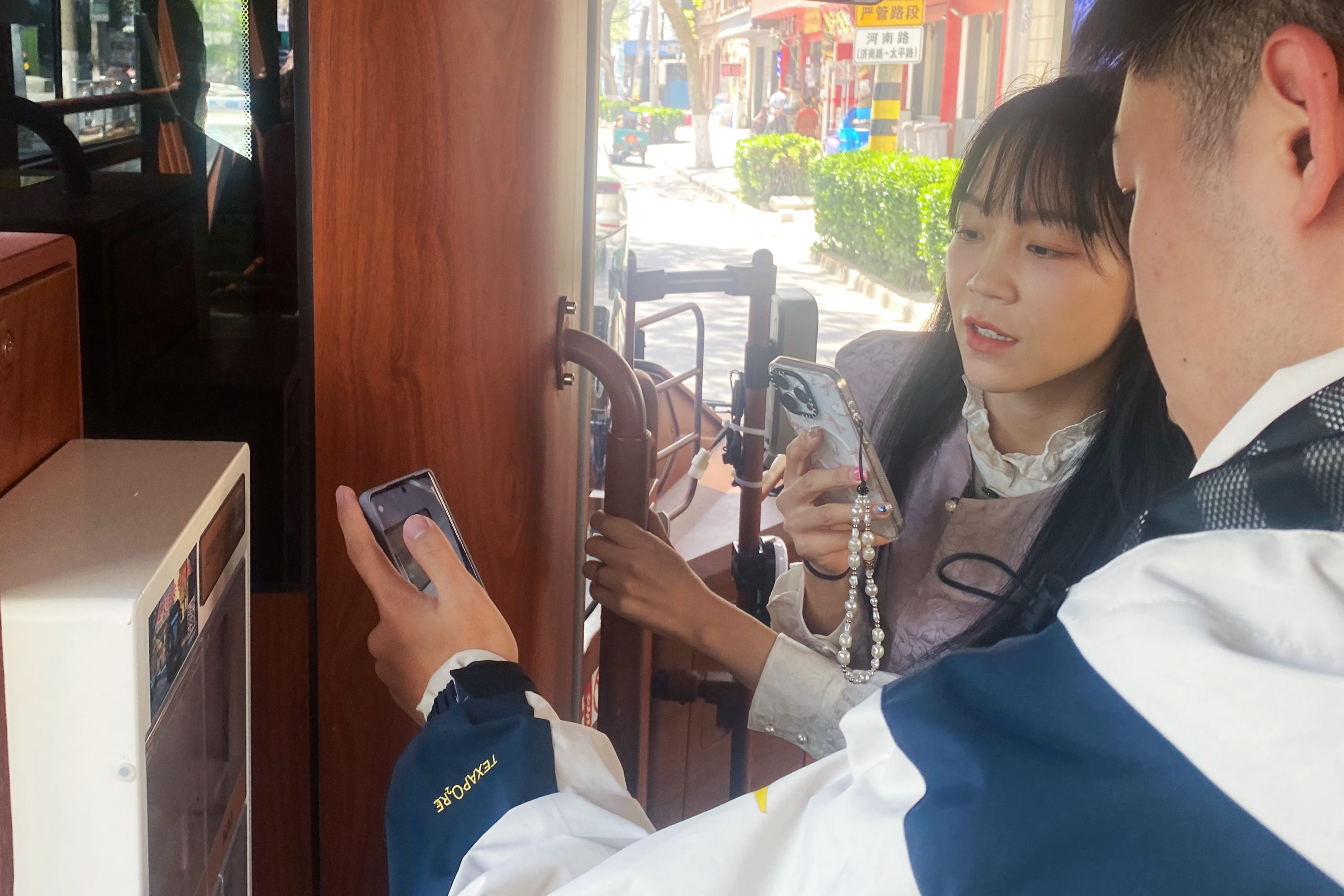 今年“五一”假期,为提升市民乘车体验,青岛城运控股公交集团在2路复古车厢里配备了自动售货机,这一创新服务场景一上线就获得了乘客们的一致好评。
