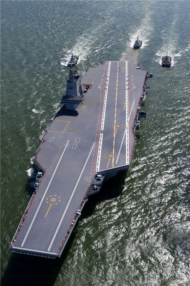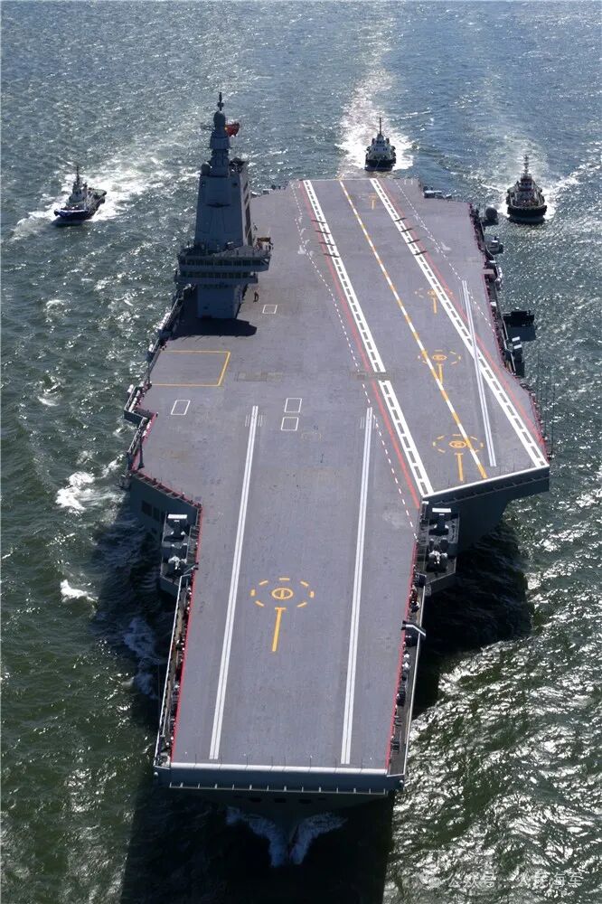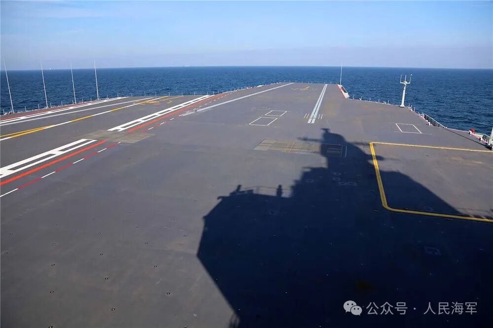 ∆海军福建舰开展首次海上试验,这是航行中的前甲板。李唐 摄