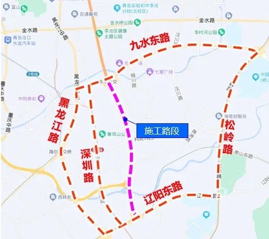 施工期间,为避免拥堵缓行情况,原由G20青银高速李村收费站至青岛东收费站区间通行的车辆,可由黑龙江路、深圳路、松岭路等道路绕行。请行经此处的车辆,注意交通标志,减速慢行,施工期间造成不便,敬请谅解。