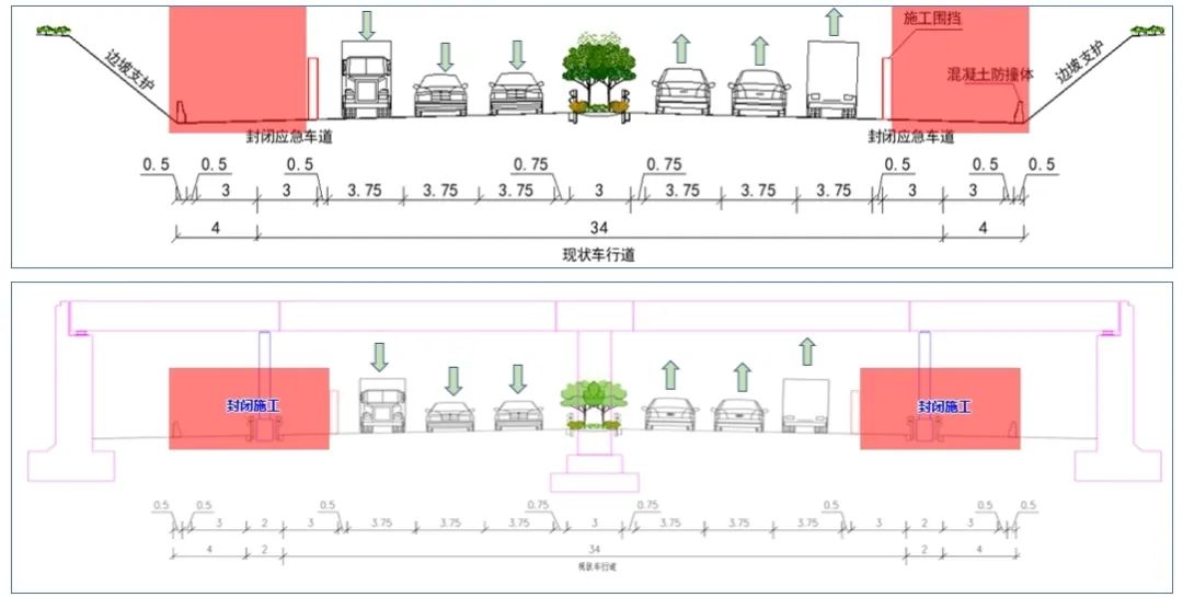 第七阶段:拆除两侧支架阶段。施工时间自2025年1月15日07时至2025年4月30日22时,封闭双向应急车道,保证双向六车道通行,限速80km/h。