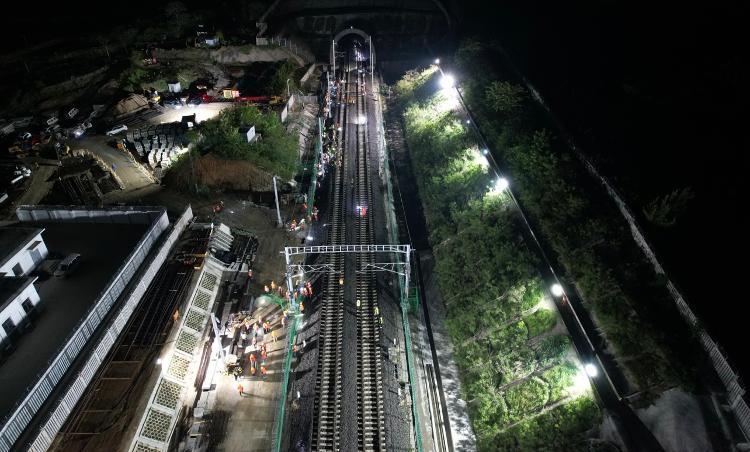 此次封停施工时间紧,涉及专业多且相互干扰和交叉多,路基、站场、轨道、四电等专业参建人员需轮班开展24小时作业,并按计划第一时间完成工作面交接。此次施工任务重,人工作业占较大比重,需拆除2组、新铺12组道岔,铺设钢轨4公里、摊铺道砟1万方,拆除和架设接触网29.8公里,光电缆敷设230公里,各类设备安装近100台。特别是在施工作业面狭窄且与四电专业施工交叉的情况下,需在19天内浇筑、养护3组无砟道岔及部分无砟轨道混凝土约1100立方(约428米),对施工精度和混凝土质量控制、工序衔接及物流运输组织提出了较高要求。