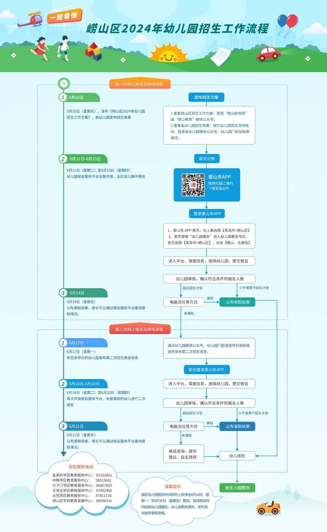 根据《青岛市教育局关于做好2024年幼儿园招生入园工作的通知》(青教通字〔2024〕37号)要求,结合我区实际,特制定崂山区2024年幼儿园招生工作方案。