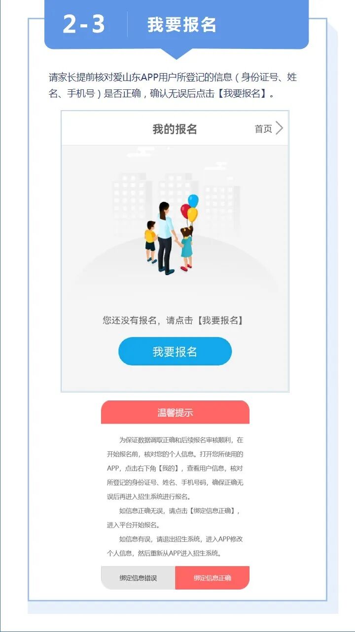 幼儿园招生实行网上办理,家长手机端下载“爱山东”APP注册报名。
