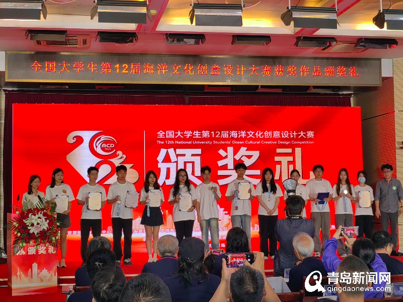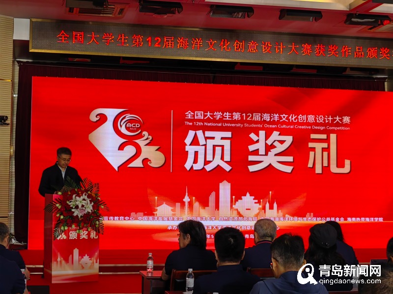 青岛新闻网5月19日讯(记者 韩彤彤)5月18日,全国大学生第十二届海洋文化创意设计大赛颁奖礼在中国海洋大学隆重举行。自然资源部宣传教育中心党委书记李航、中国海洋发展基金会副理事长兼秘书长潘新春、中国海洋大学党委常委、副校长刘勇、自然资源部北海局办公室主任、二级巡视员柳凤林、中国海油党建工作部副主任、中国海油海洋环境与生态保护公益基金会副秘书长张中华等主办方代表,山东工艺美术学院苗登宇等评审专家代表,各高校获奖师生代表等150余人出席颁奖典礼。