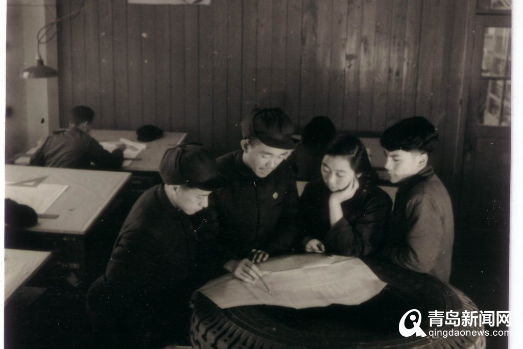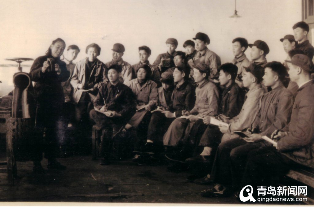上世纪50年代,青岛橡胶厂的女工程师在为技术人员讲解轮胎工艺知识。