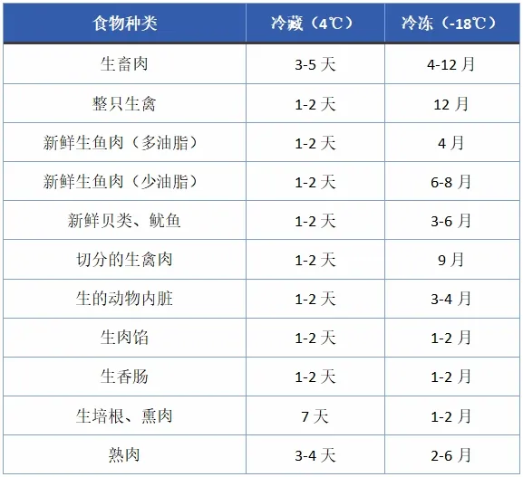 一般情况下,不建议将冻肉类及海鲜类放置过久,最好在1个月内食用完毕。如果遇到特殊情况,有延长保存期限的需求,那也要注意不同种肉类及海鲜的最佳保存期限: