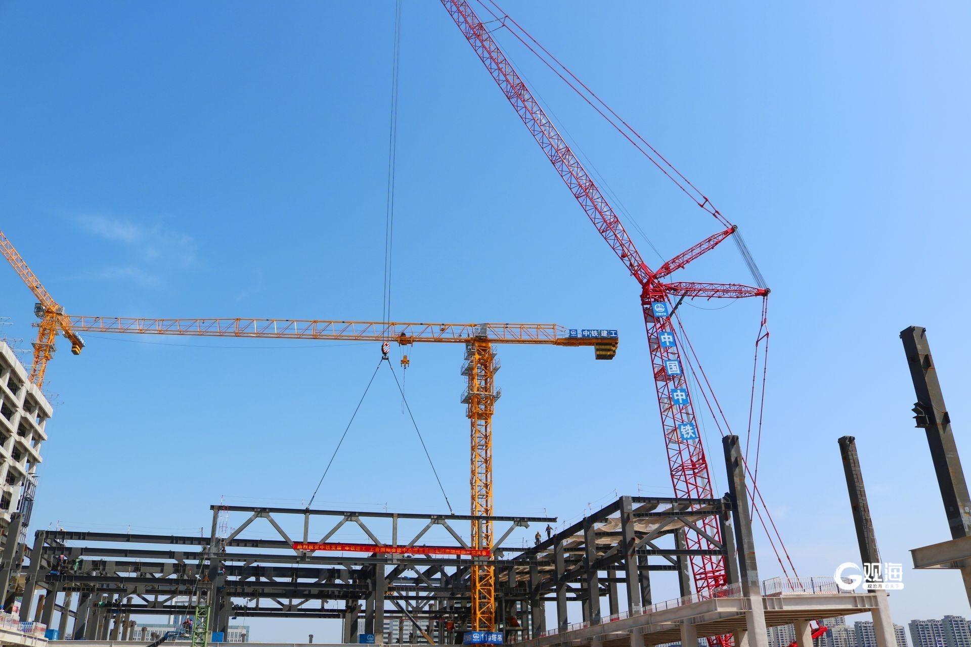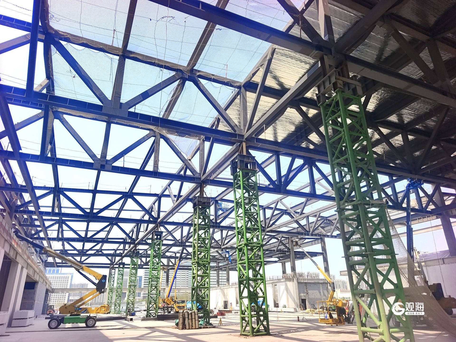 青岛日报社/观海新闻6月21日讯 6月20日,随着最后一榀钢桁架吊装完成,由中铁建工集团承建的上合大厦项目迎来了钢结构工程全面封顶,提前20天完成钢结构工程,为工程按期竣工交付创造了关键条件。项目建成后,将成为上合组织国家领导人峰会、国际投资贸易博览会、国际经贸组织论坛等国际大型会议的举办地。
