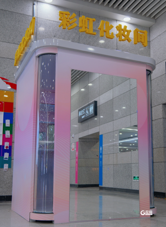健身中心(红岛会展)地铁站设置“绿波”化妆镜,地铁青岛北站打造“彩虹化妆间”,为歌迷朋友们提供应援妆容的化妆场所。