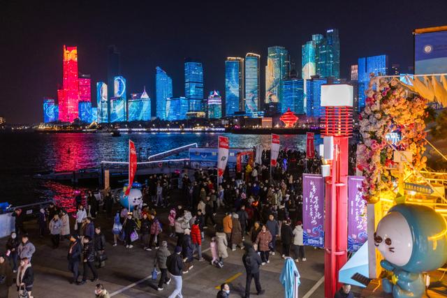 12月31日晚,青岛奥帆中心人气满满,大批市民和游客来到这里参与跨年活动。当晚,“你好2025”跨年庆祝活动在这里举行,绚丽的灯光秀、精彩的跨年舞台等内容吸引着许多人前来浮山湾畔,感受跨年夜的美妙氛围,共同迎接新一年的到来。