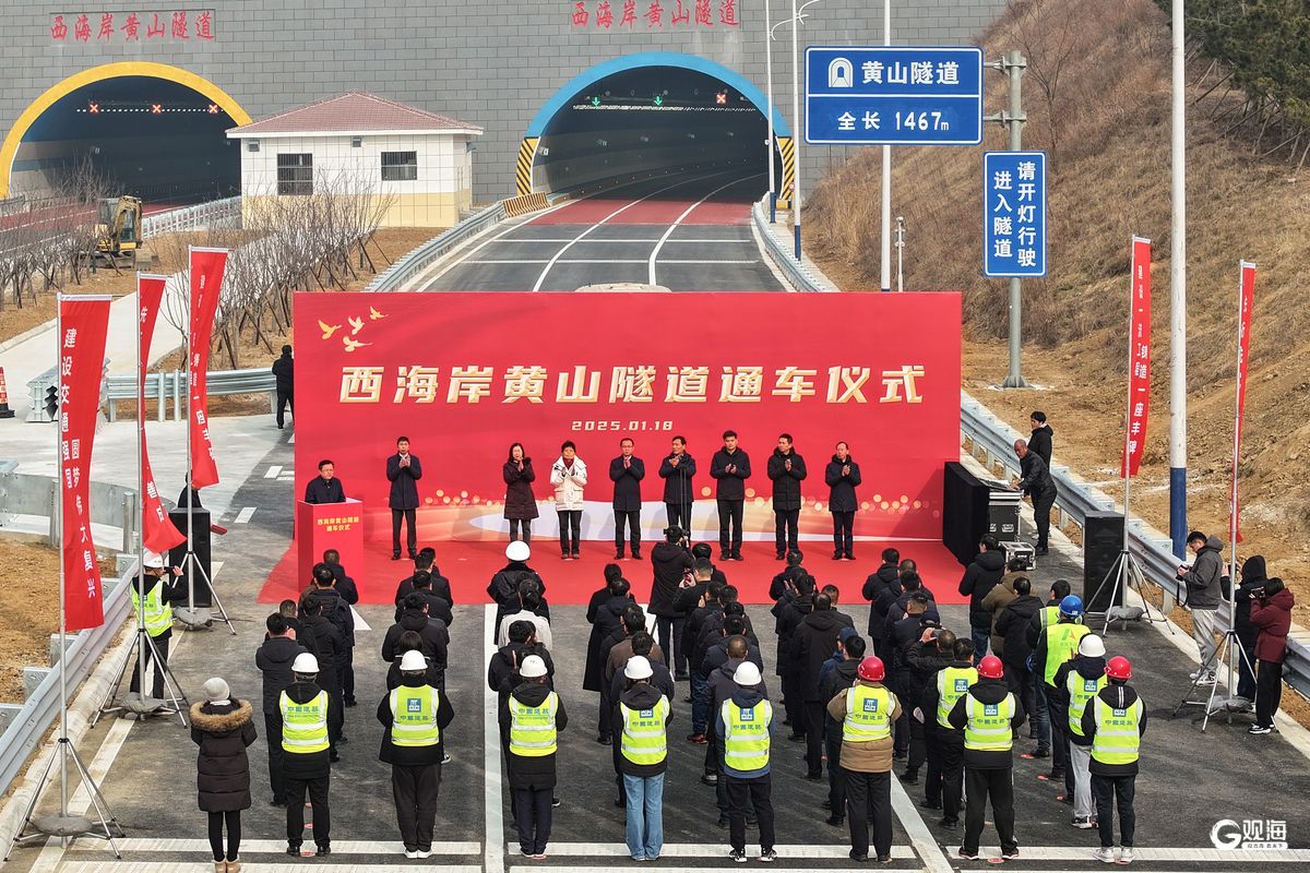 青岛日报社/观海新闻1月19日讯 1月18日上午,青岛西海岸新区交通运输局举行了西海岸黄山隧道通车仪式。青岛市公路事业发展中心党委委员王秀芬、青岛市交通运输局公路处副处长王玉田出席仪式。青岛西海岸新区副区长赵英民致辞并宣布通车,区交通运输局局长李海波介绍了黄山隧道基本情况,区相关单位代表、出资单位和建设单位代表共同参加了仪式。