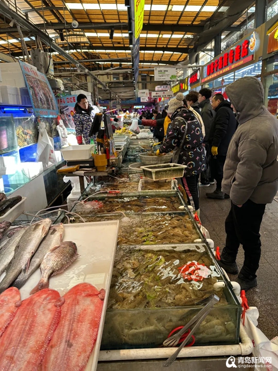 走进团岛农贸市场,热闹气氛扑面而来,摊贩介绍,不仅海蛎子、鲅鱼、刀鱼持续热销,帝王蟹、龙虾等高档海鲜也备受欢迎。