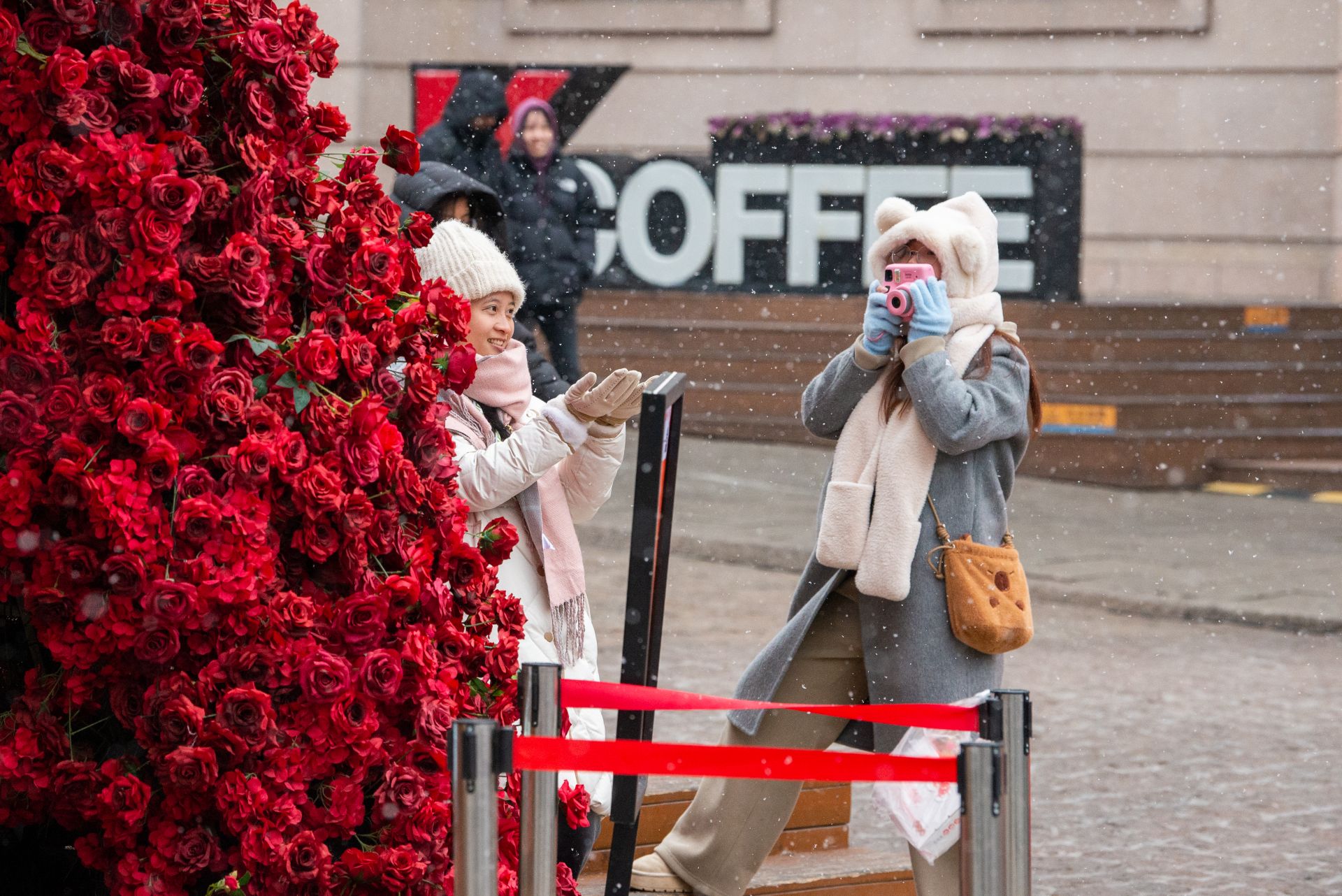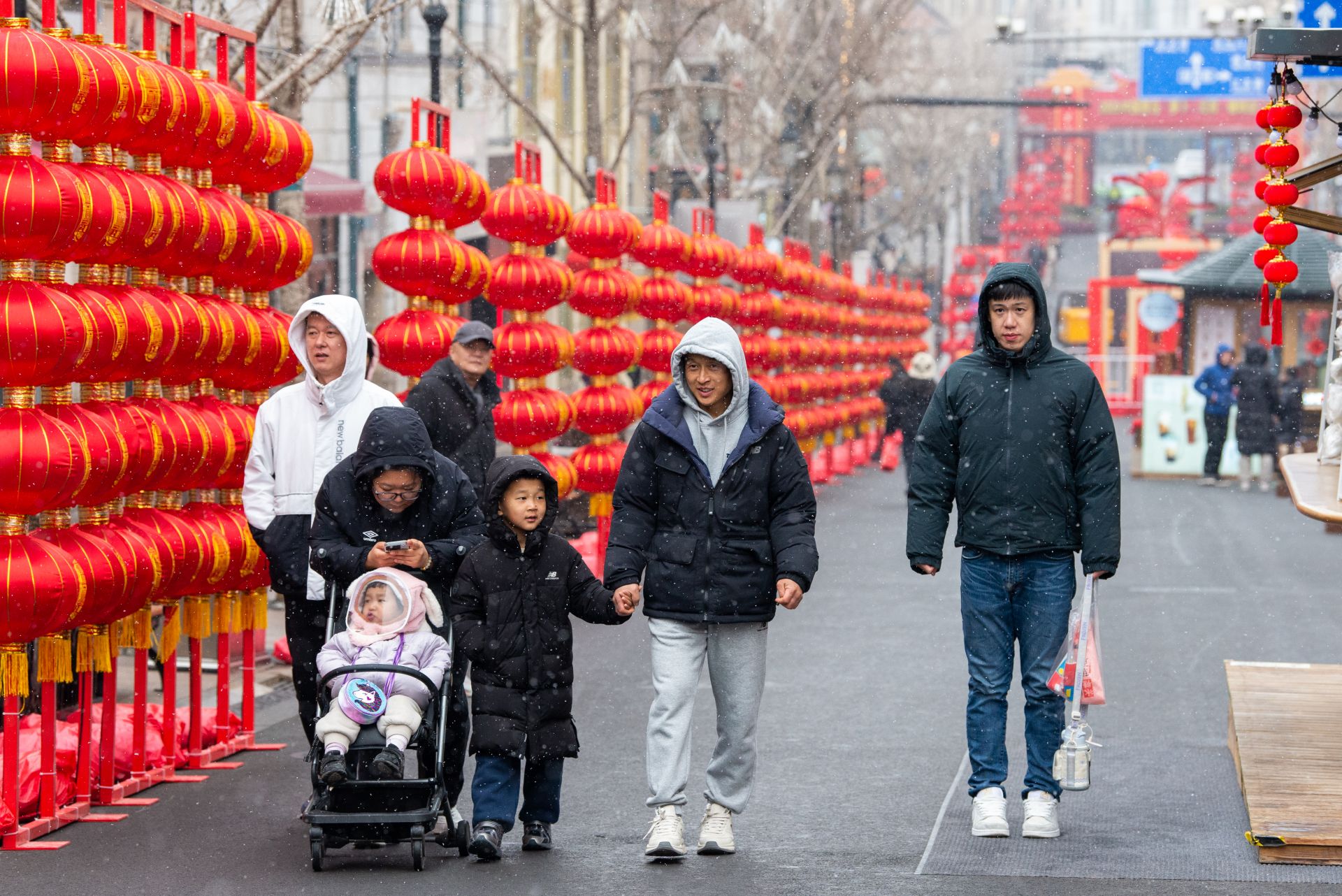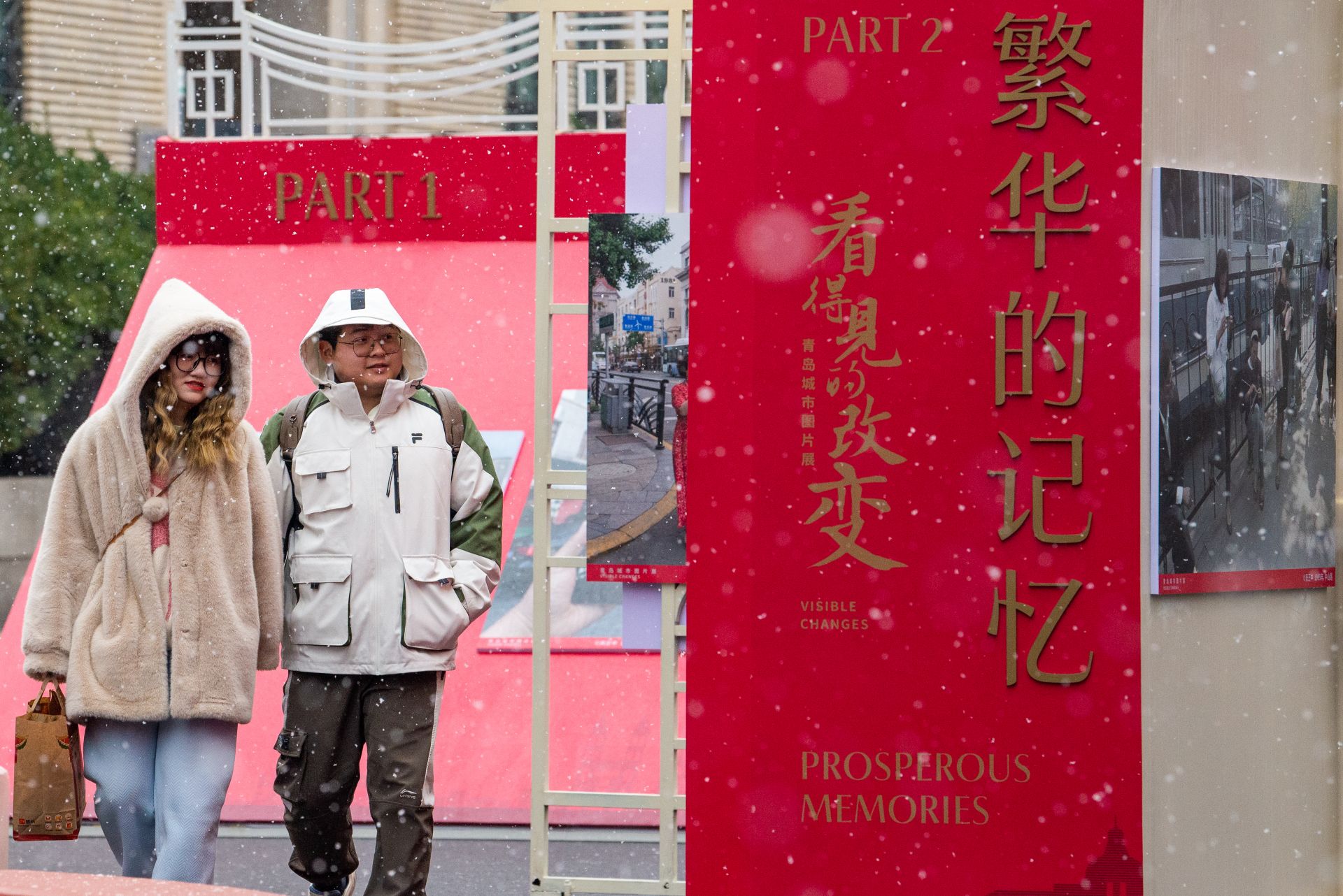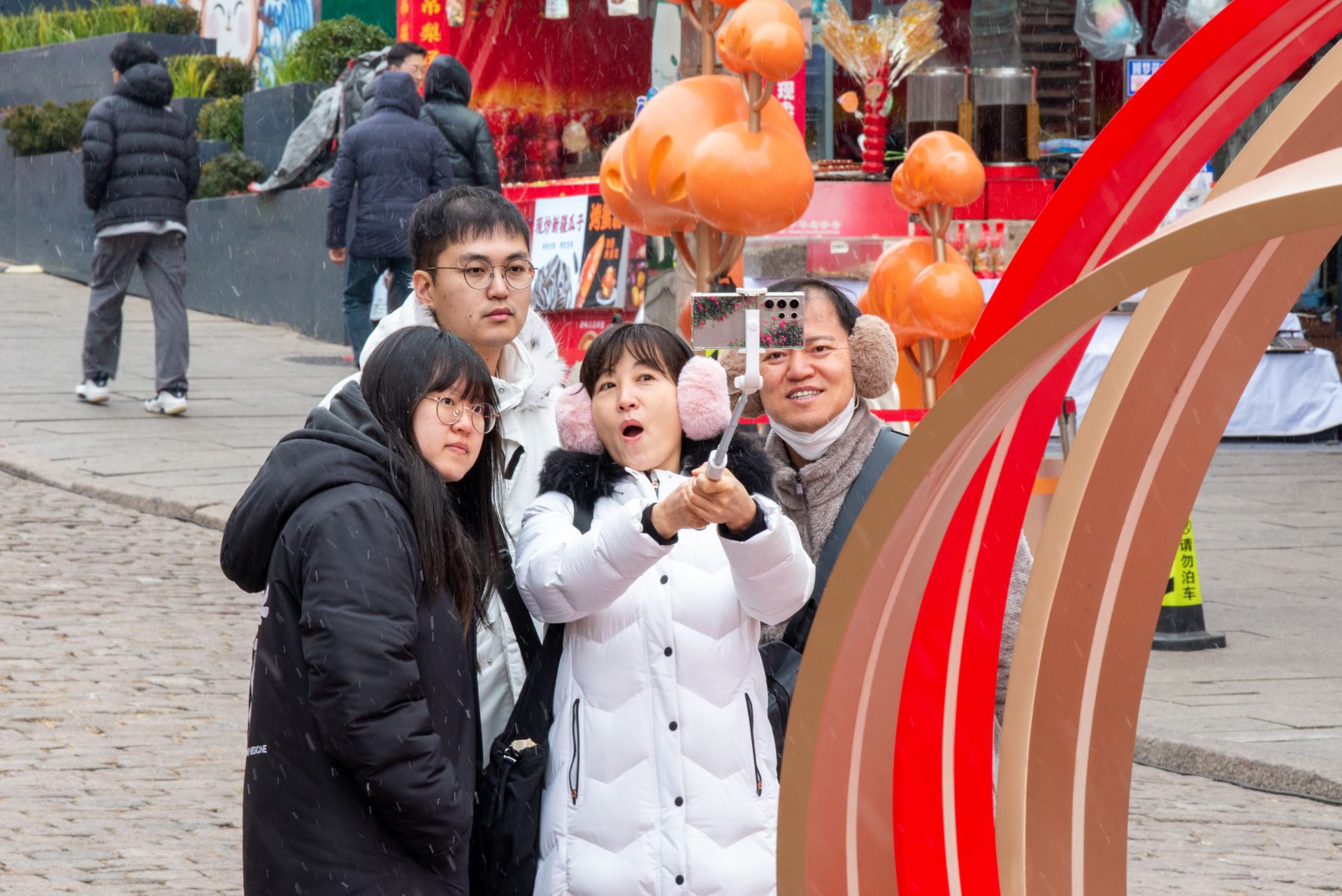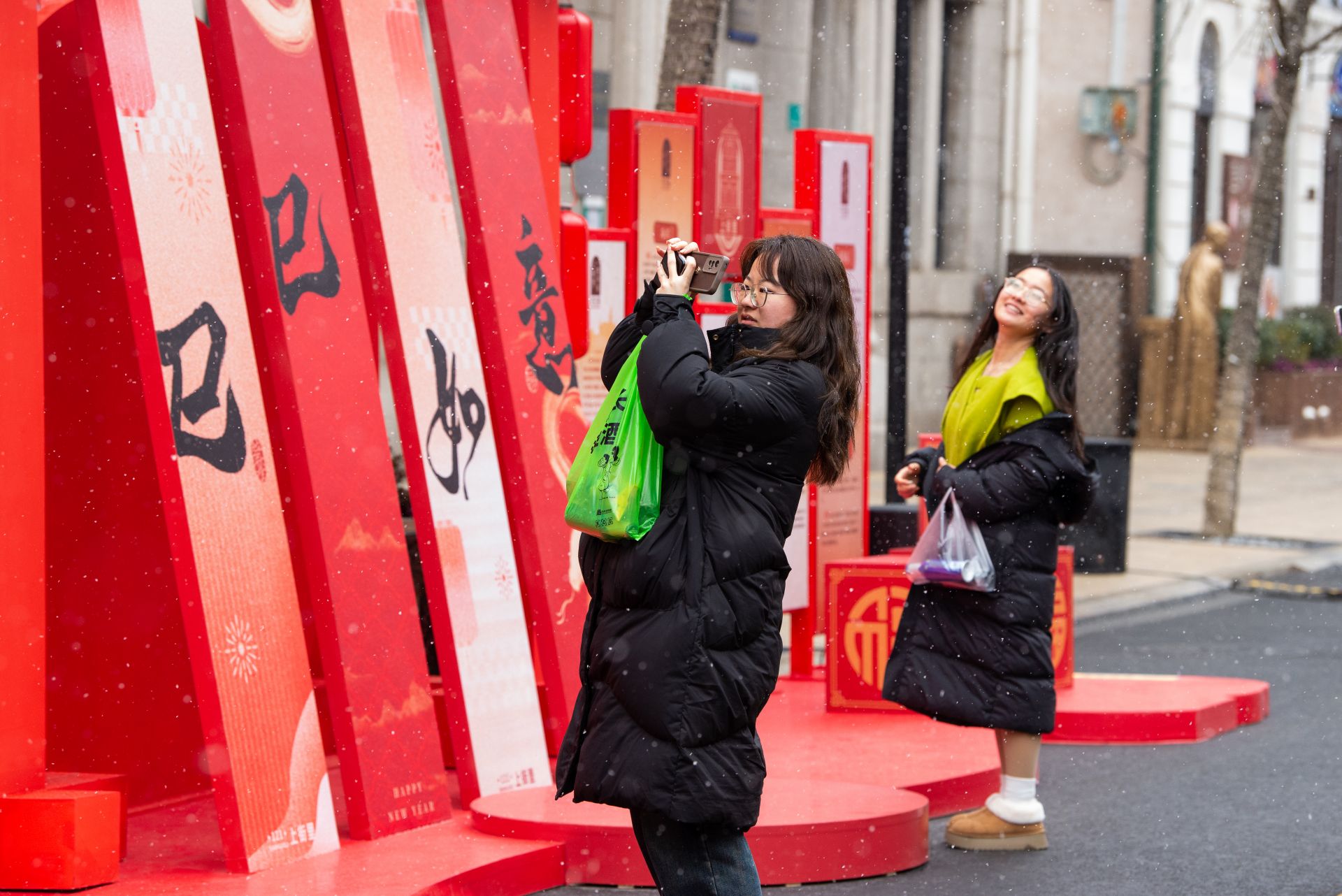 1月26日下午,青岛普降瑞雪。记者在中山路看到,虽然降雪落地即化,但仍给市民和游客带来不少惊喜,增添了年味。(青岛日报/观海新闻记者 于滈 文/图)