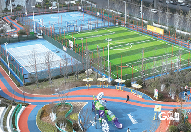 新建1处笼式多功能灯光运动场、2处笼式羽毛球灯光场地、1处儿童运动乐园,并在健身区域周边铺设塑胶场地、安装休闲座椅,健身场地面积达到2100平方米