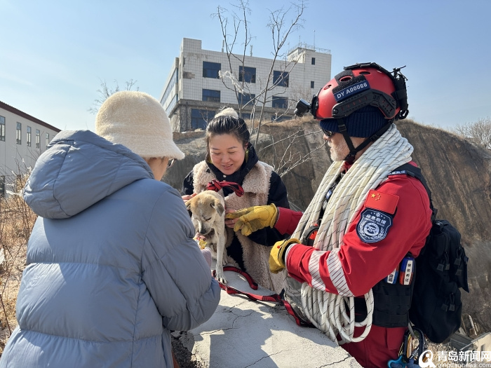 小狗跌落山崖被困数日 青岛市民接力解救“与其看着生命流逝不如尽己所能帮一把”