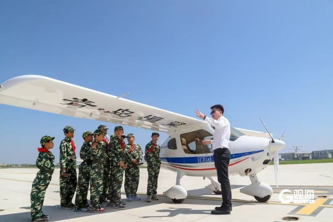 青岛恒翼航空在青岛即墨机场开展青少年航空研学活动。