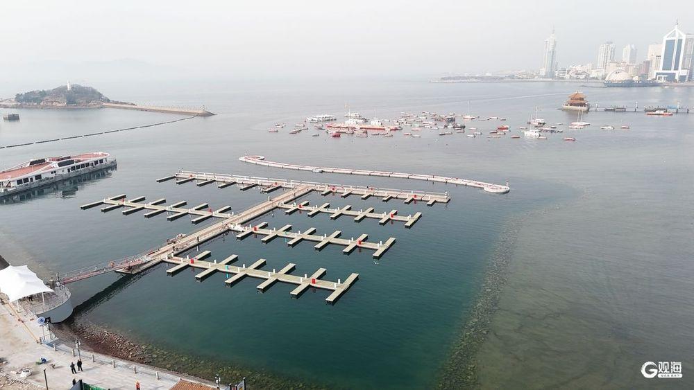青岛湾栈桥码头项目总体分为两部分,包括北侧游艇码头区和南侧旅游客船区,通过外侧浮式防波堤与小青岛的主防波堤形成掩护较好的环抱港池。南侧旅游客船区(一期)已于2024年5月1日建成启用,游客可从此处登船“海上游青岛”。