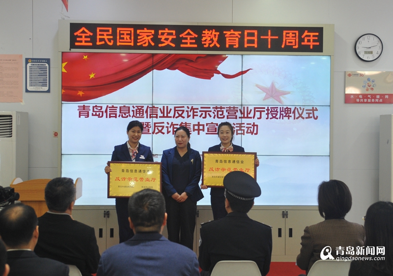 青岛新闻网4月14日讯(记者 陈志伟)今天上午,在第十个全民国家安全教育日到来前夕,青岛信息通信业反诈示范营业厅授牌仪式暨反诈集中宣传活动在青岛联通山东路营业厅举行。此次活动聚焦“反诈示范营业厅”这一关键载体,全力推进反诈宣传工作,旨在应对电信网络诈骗高发态势。借助全民国家安全教育日的契机,强化反诈宣传,凝聚各方力量守护市民财产安全。