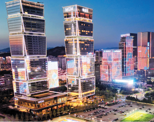 入夜的美高梅酒店和钓鱼台酒店美轮美奂。