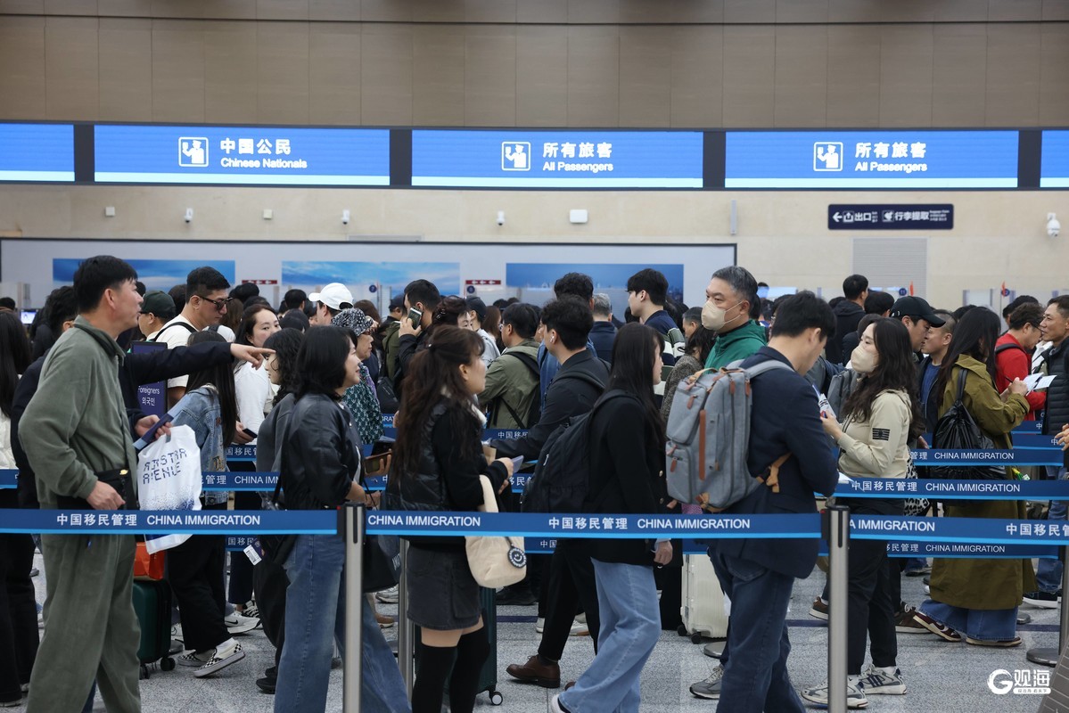 随着中国单方面免签、互免签证国家范围不断扩大,特别是实施240小时过境免签政策后,外籍人员来华旅游、商务、访问、探亲热情持续高涨。截至4月22日13时,该口岸入境外籍旅客近14万人次,同比增长42.2%。据统计,来自韩国、日本、澳大利亚、马来西亚、美国的旅客位居前列。免签入境的占69%,同比增长1763%。当地边检机关通过优化警力配置,提供外语引导等措施,全力做好高峰时段的通关保障工作。