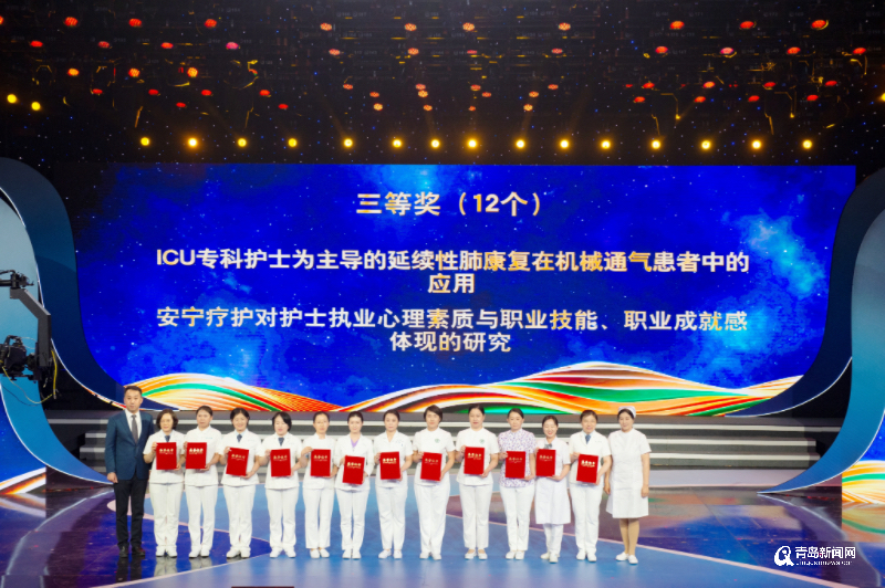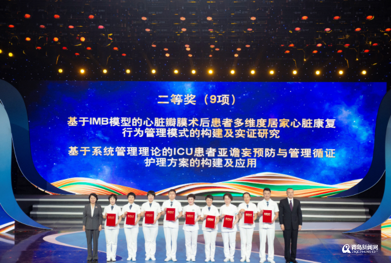 青岛市卫生健康委员会党组成员、副主任、市中医药管理局副局长张充力,青岛市护理学会理事长高玉芳为“青岛护理科技奖”三等奖代表颁奖
