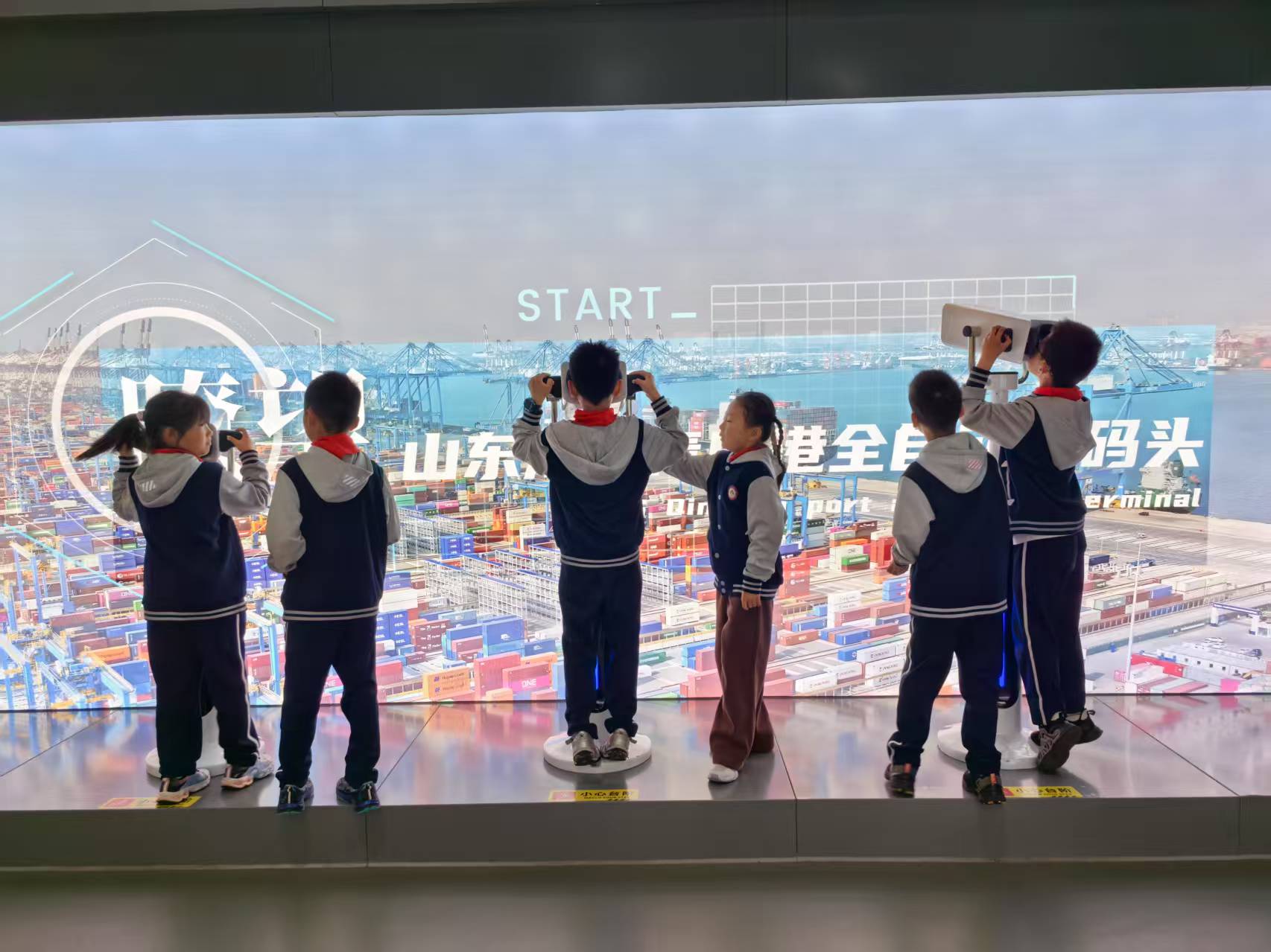 在青岛前湾港自动化码头,世界领先的“5G+自动化”技术揭开了神秘面纱。学生们通过VR互动设备“亲历”集装箱装卸作业,在工程师指导下尝试操控简化版智能系统,目睹了全球首创的氢动力自动化轨道吊如何实现全程“零碳”作业。“原来‘振超效率’不是冰冷的数据,而是千万次精准操作的累积!”看着屏幕上实时跳动的装卸数据,同学们对课堂所学的"创新驱动发展"有了具象认知。