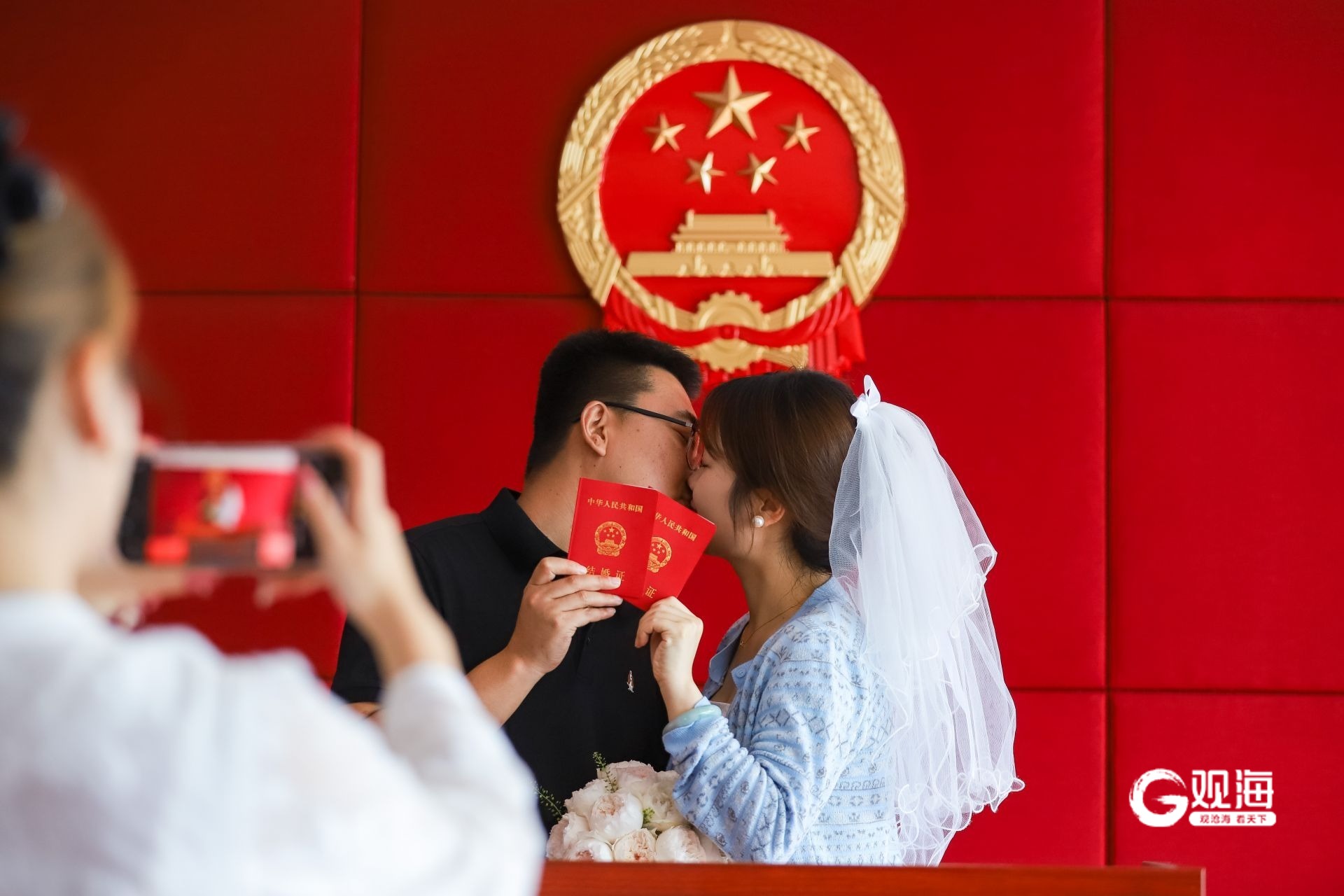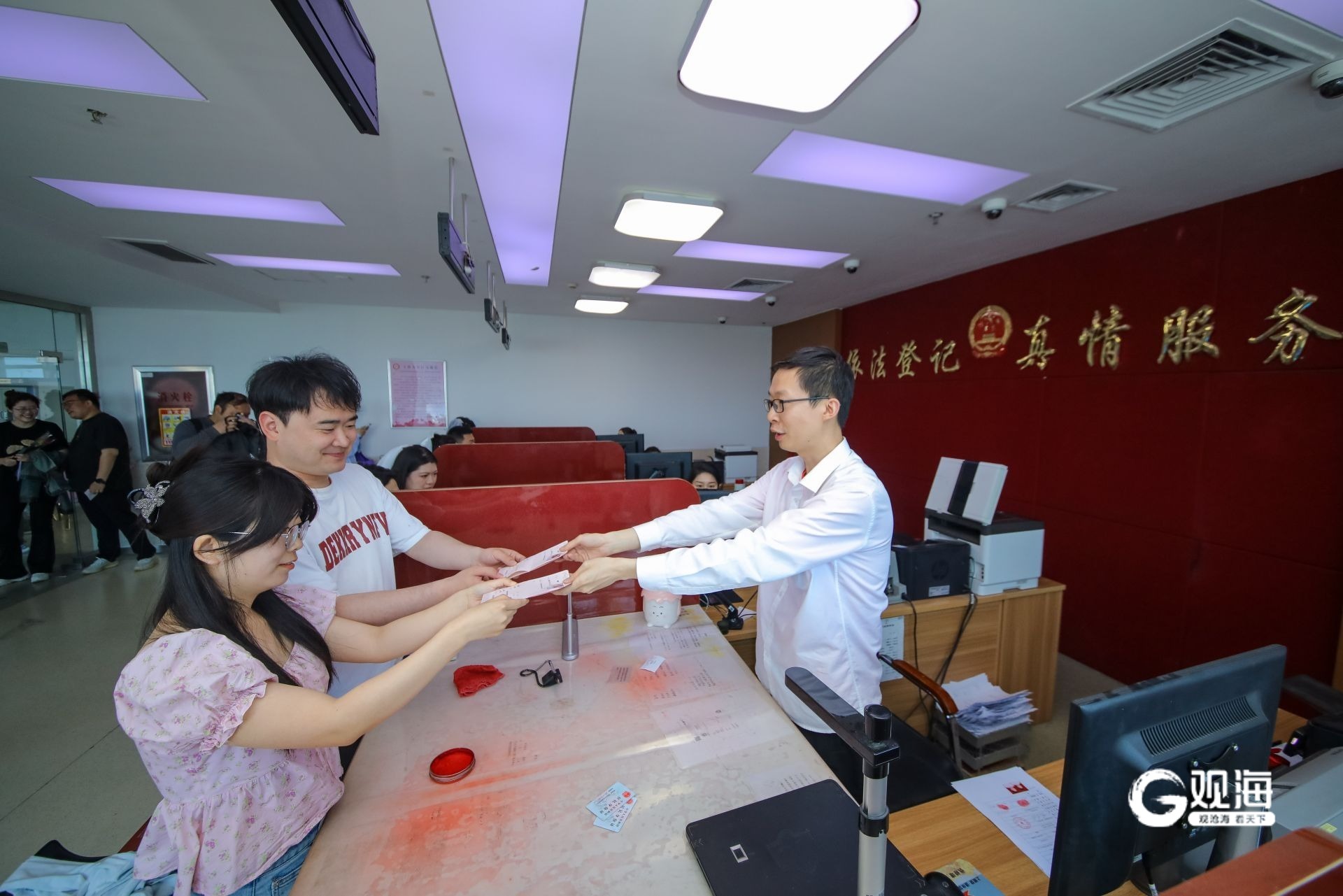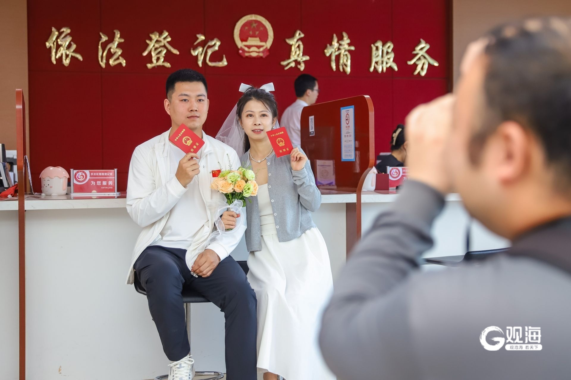 青岛日报社/观海新闻5月20日讯 2025年5月20日,山东省青岛市李沧区婚姻登记处迎来结婚登记高峰,许多新人选择在这一天登记结婚,以此见证自己美好的爱情。 (青岛日报/观海新闻记者 张晋 通讯员 张鹰)
