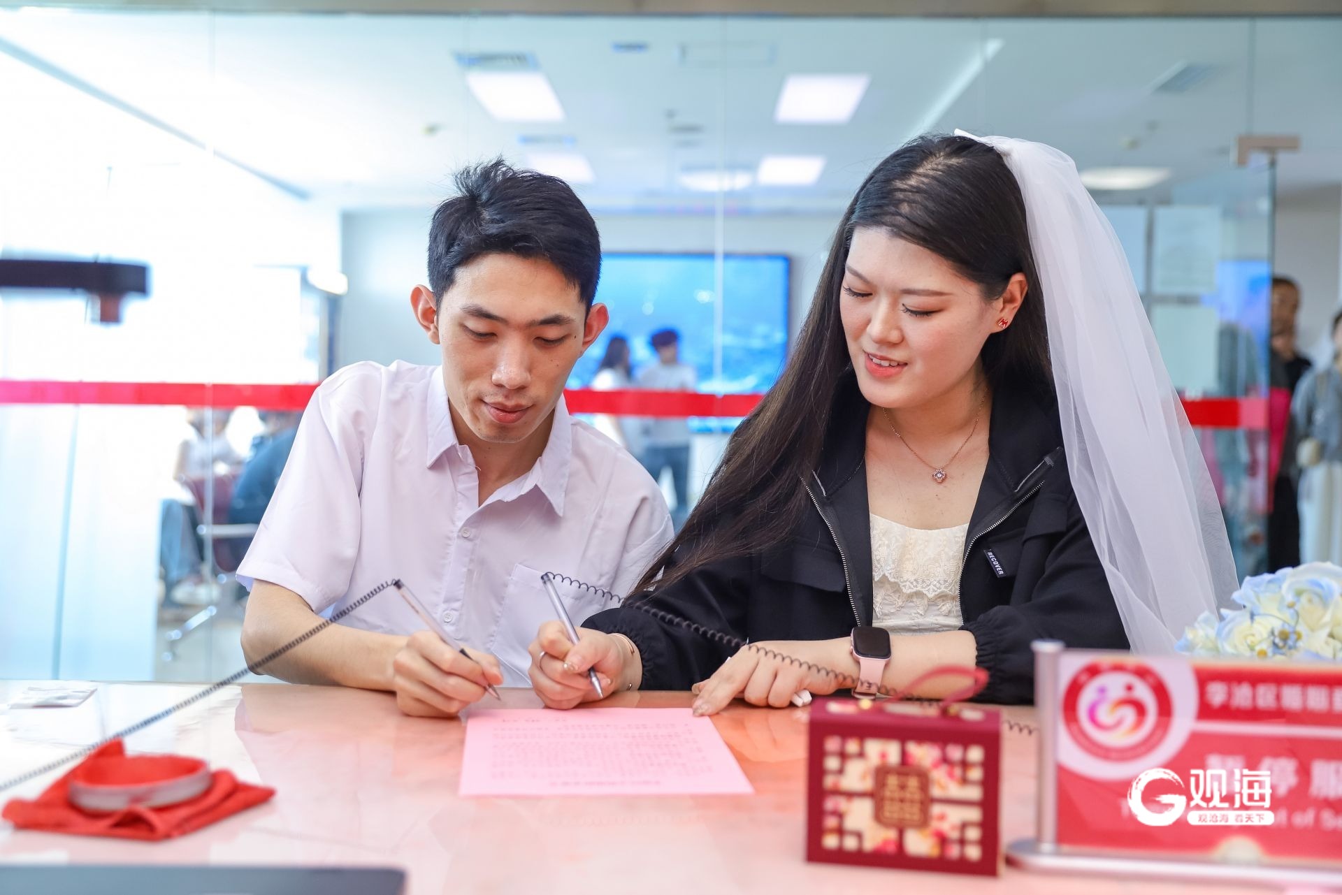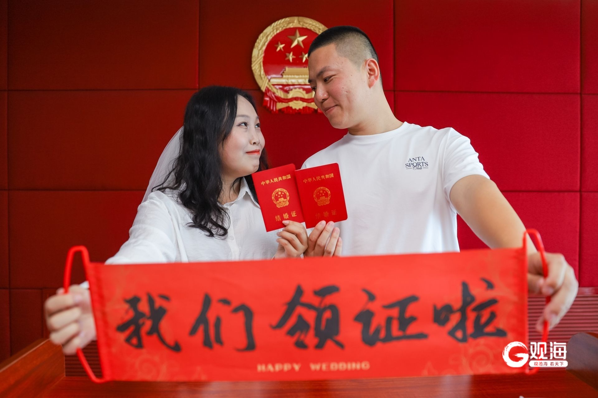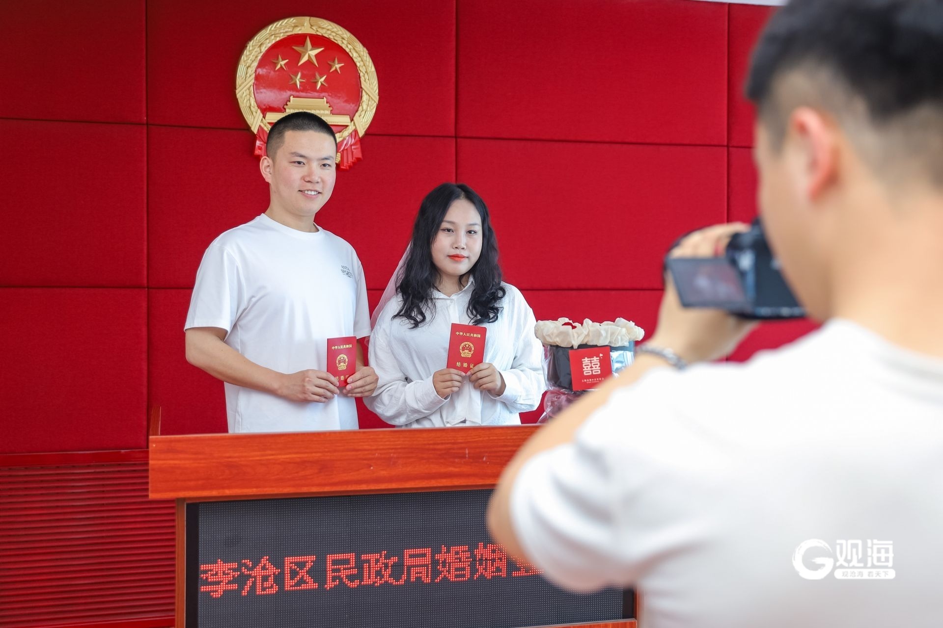 青岛日报社/观海新闻5月20日讯 2025年5月20日,山东省青岛市李沧区婚姻登记处迎来结婚登记高峰,许多新人选择在这一天登记结婚,以此见证自己美好的爱情。 (青岛日报/观海新闻记者 张晋 通讯员 张鹰)