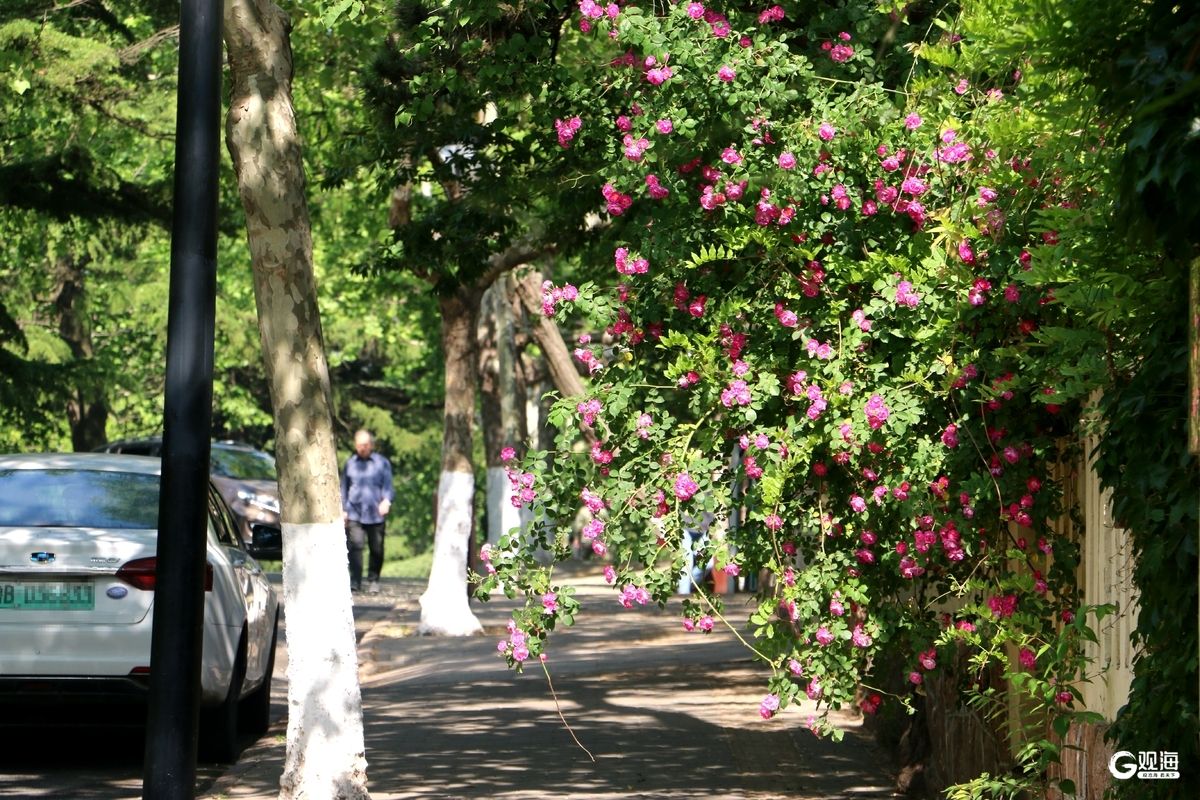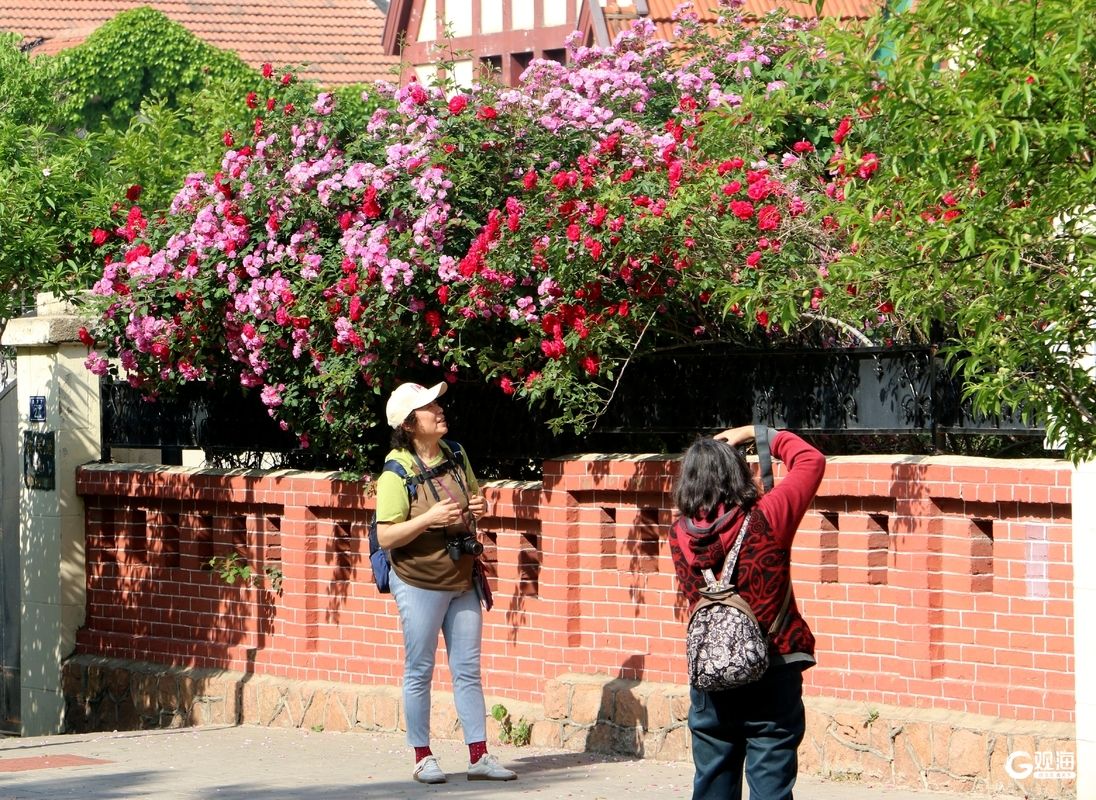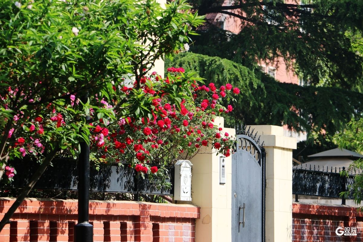 青岛日报社/观海新闻5月21日讯 初夏,漫步青岛八大关,红瓦绿树间,蔷薇攀上老洋房的围栏,粉白花朵与红墙相映成诗。海风拂过,花影摇曳,时光在此定格成一幅油画,浪漫与古典交织,诉说着百年风华,游客也放慢脚步欣赏着如画美景。(青岛日报/观海新闻记者 梁超 文/图)