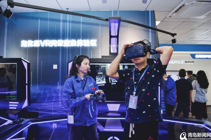 在学校智能制造学院虚拟仿真实训基地,记者团被一条“虚实结合”的榨菜生产线深深吸引。这条“赛博”生产线,正是学校与重庆涪陵榨菜集团股份有限公司、江西科骏实业有限公司合作开发的具有区域特色的榨菜生产线数字孪生VR系统。通过虚拟仿真技术,系统真实还原了榨菜从种植、腌制、自动化生产到包装的全流程,还能实时传输生产数据,实现工业互联网应用的智能化培训。